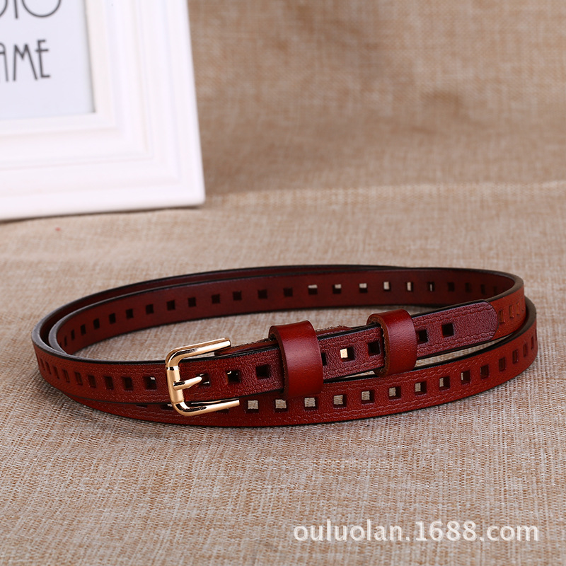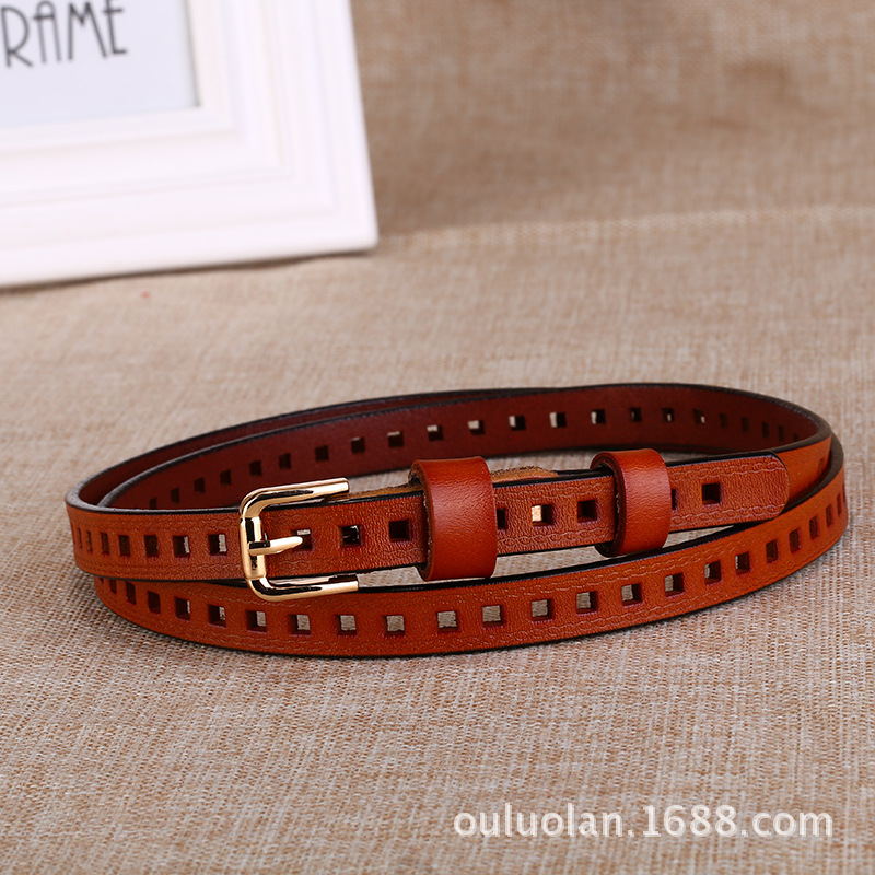 新款真皮女士细皮带高端牛皮复古百搭真皮腰带女欧美女士装饰腰带