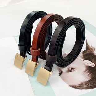 厂家直销女士新款牛皮细腰带时尚简约百搭光面按扣配连衣裙小皮带