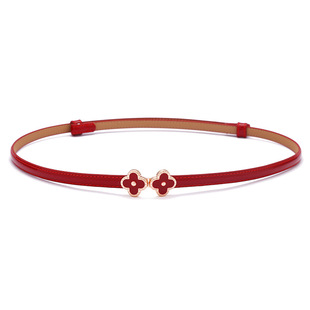 牛皮百搭调节细腰带女高端女士连衣裙红色细皮带腰封腰饰定制厂家