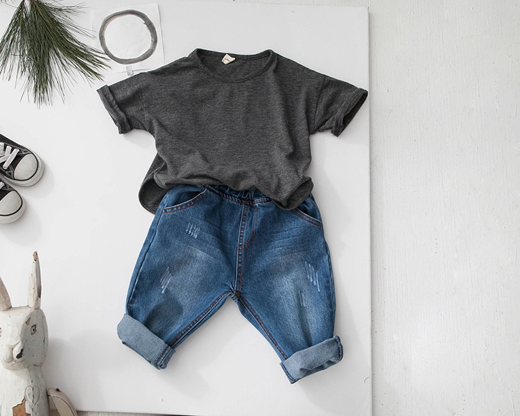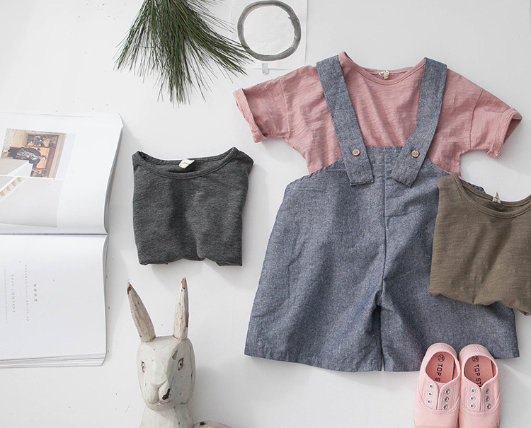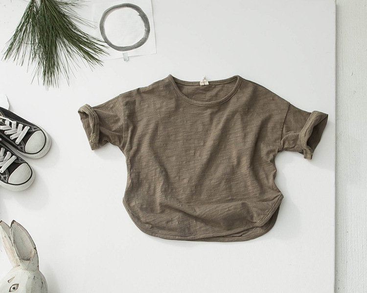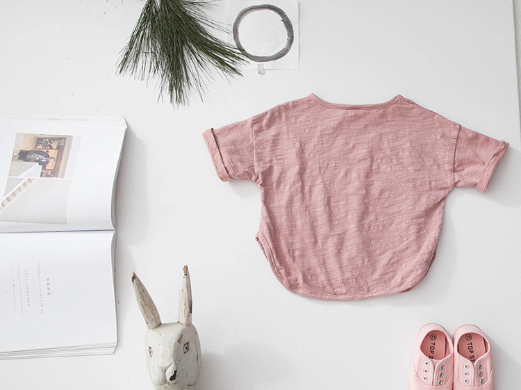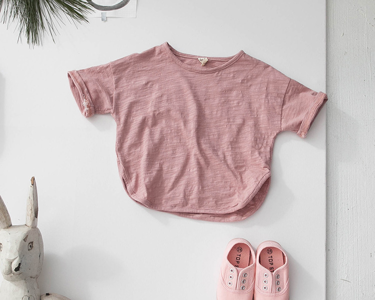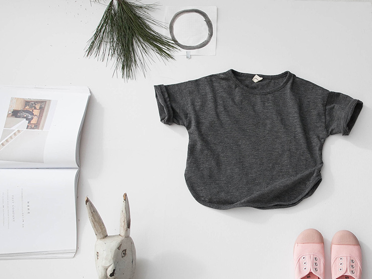 새로운 여름 소녀 티셔츠 반팔 어린이 탑 한국 스타일 느슨한 솔리드 컬러 라운드 넥 소년 바닥 셔츠 대나무 면화스토어 가기