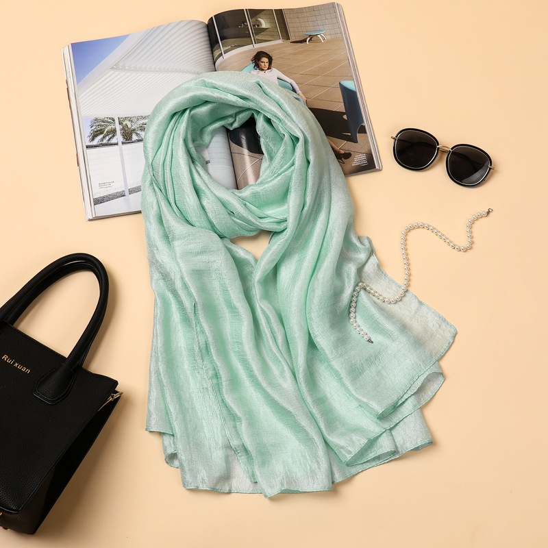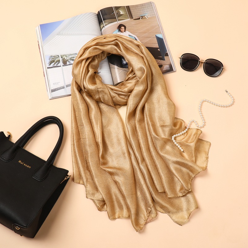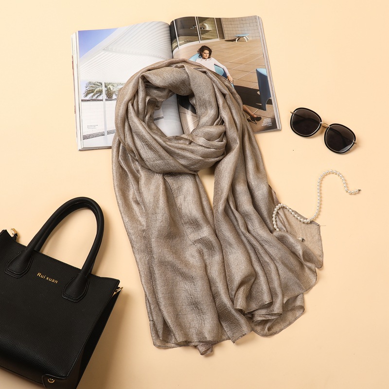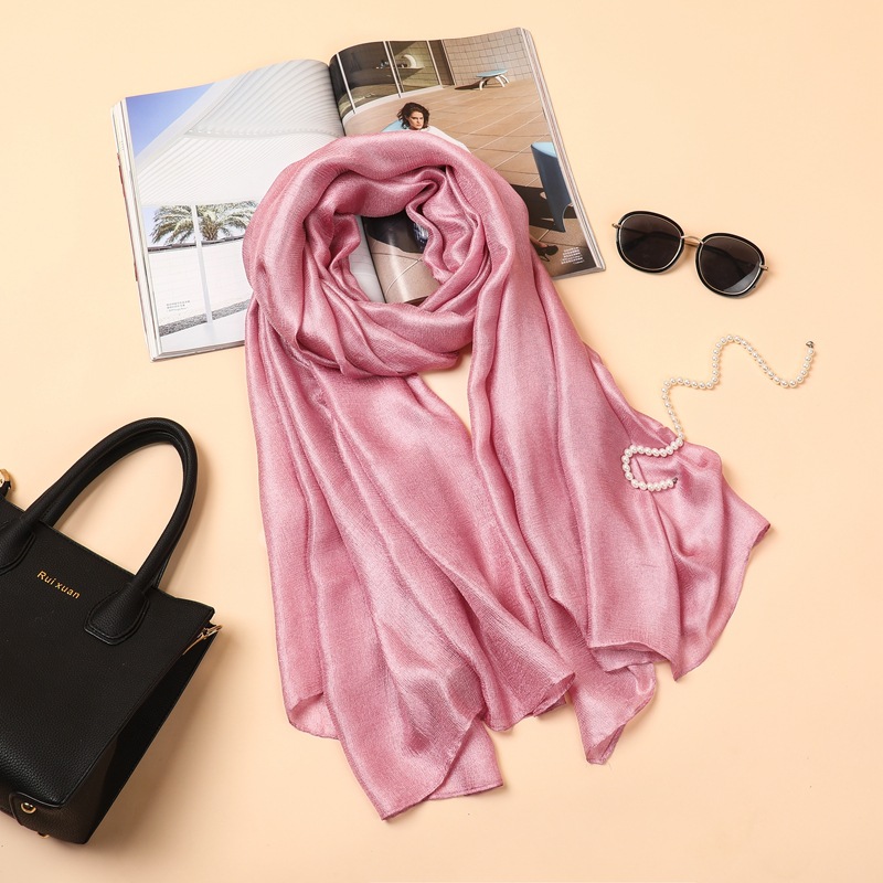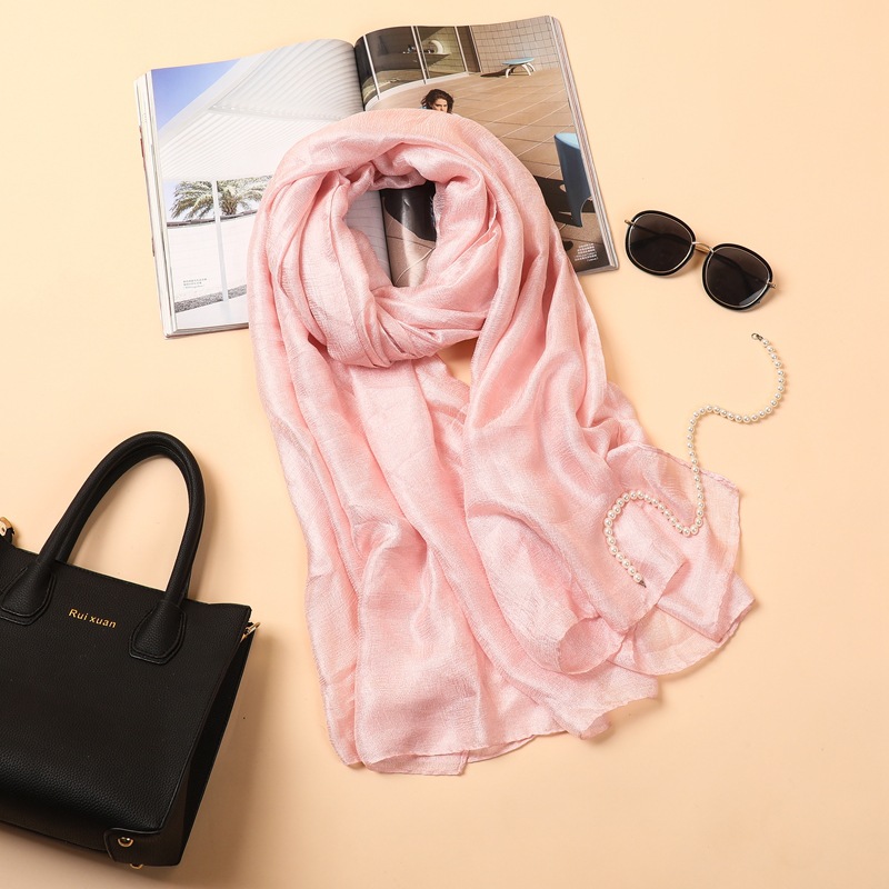 柔和的色彩配合珠光工艺,让围巾的光泽度很高很有质感
