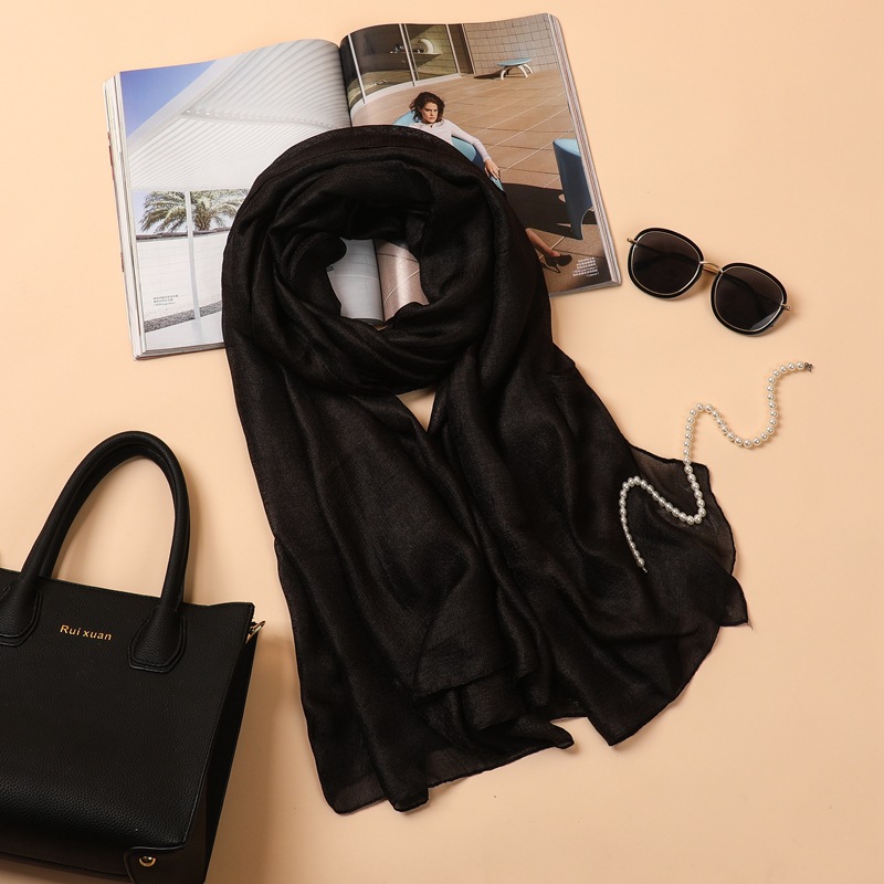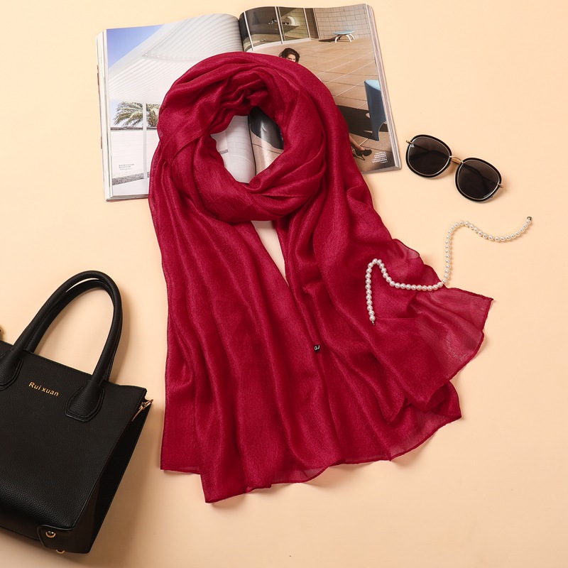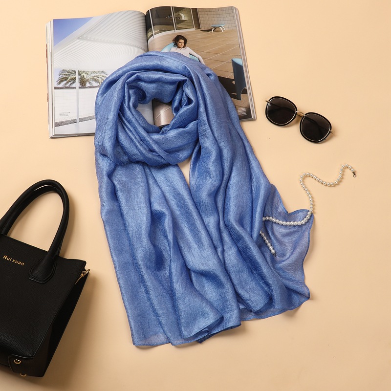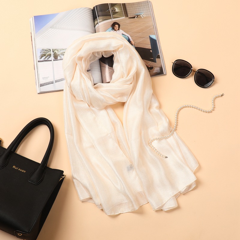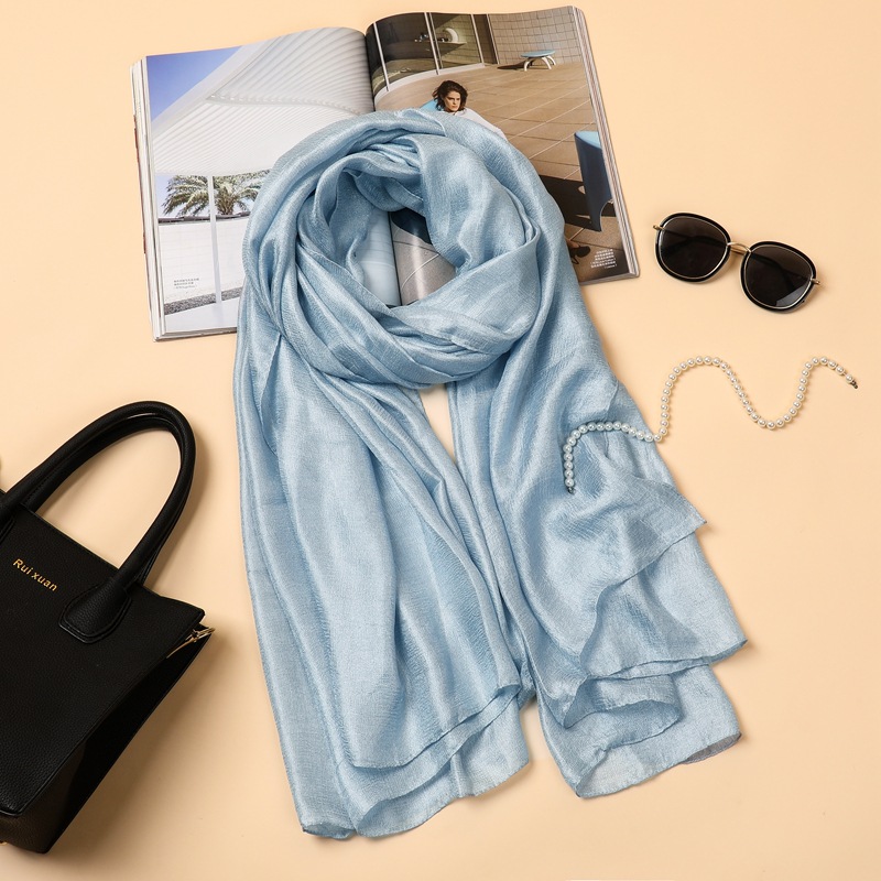 柔和的色彩配合珠光工艺,让围巾的光泽度很高很有质感