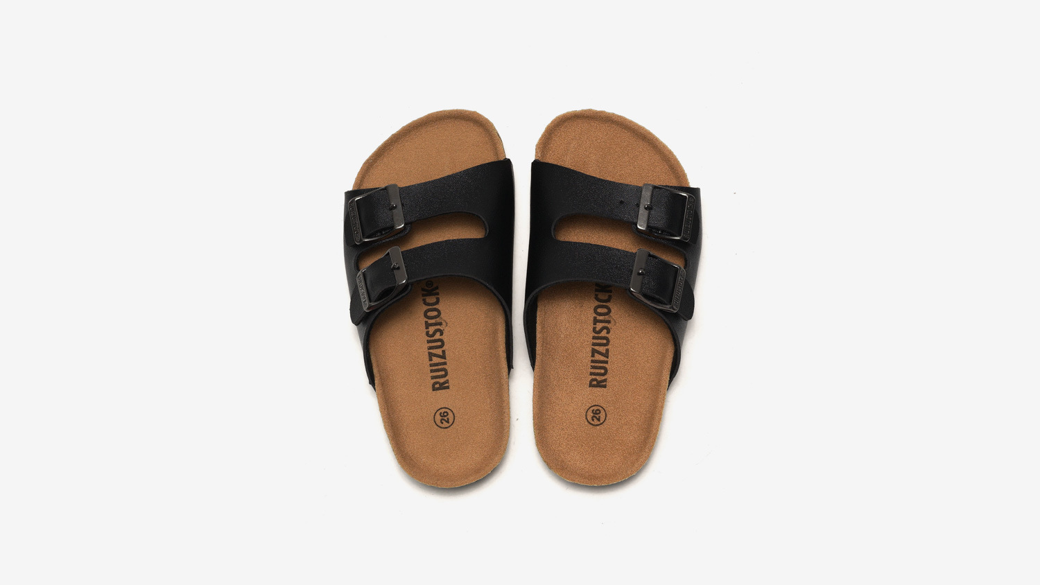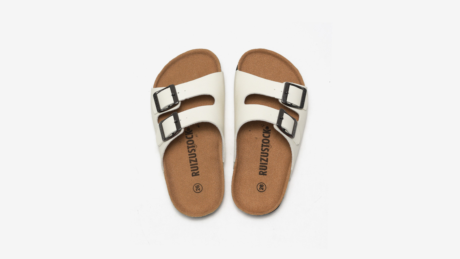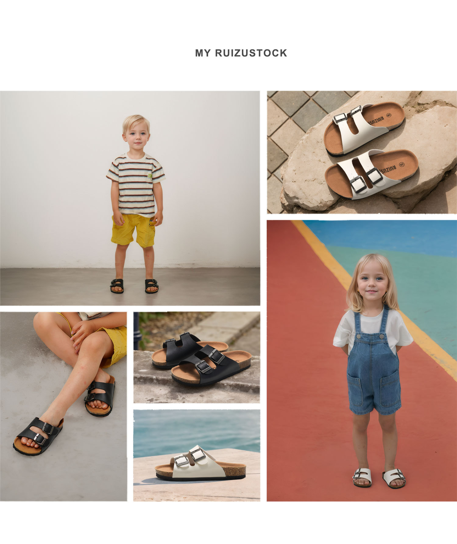 2025 Ruizu 봄과 가을 패션 어린이 코르크 슬리퍼 소년 한 단어 샌들 유행 소녀 해변 신발 국경