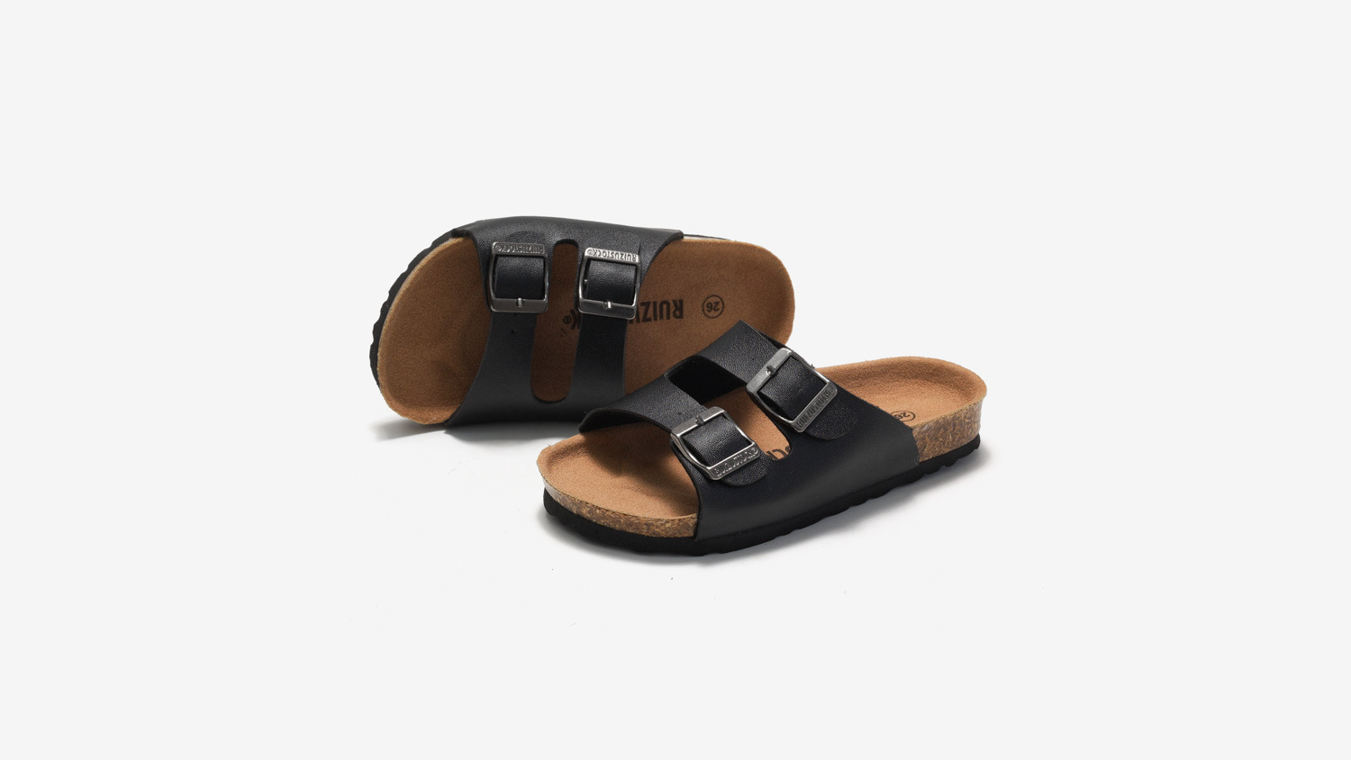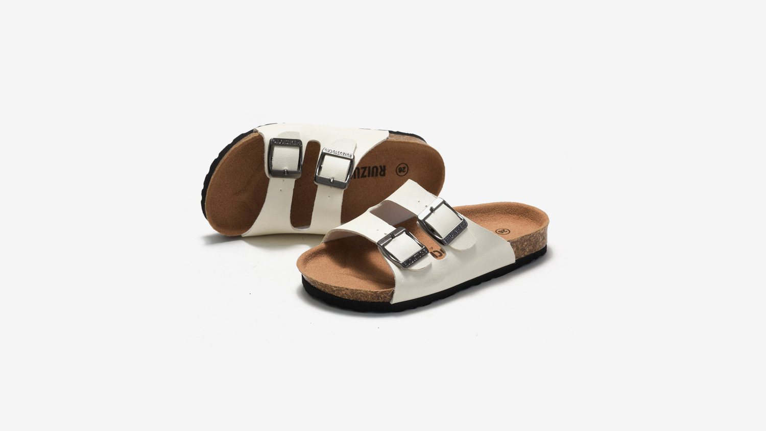 2025 Ruizu 봄과 가을 패션 어린이 코르크 슬리퍼 소년 한 단어 샌들 유행 소녀 해변 신발 국경스토어 가기