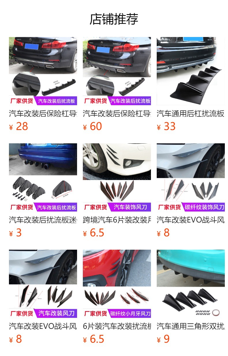 【产品说明】:本产品大部分车型适用,安装后可以起到减少行驶过程中空气的阻力,也可以起到装饰作用。