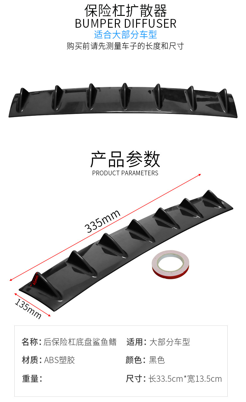 35.5CM鲨鱼鳍后杠扰流板汽车改装后保险杠3翼鲨鱼鳍底盘导流板