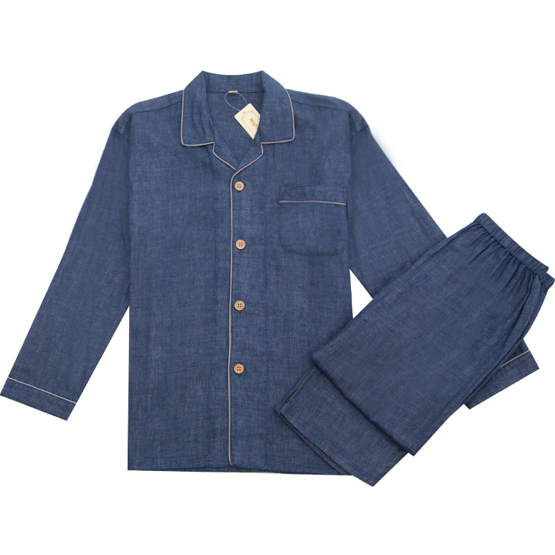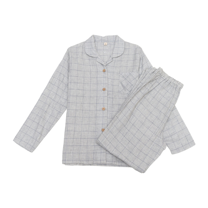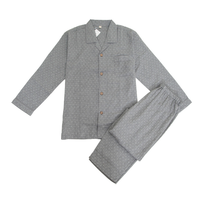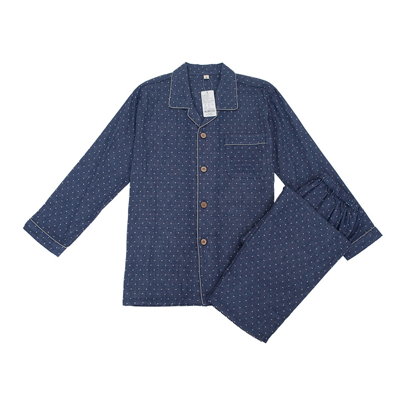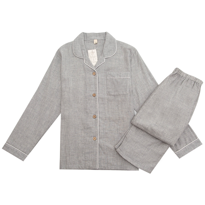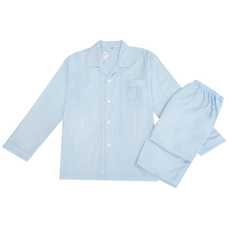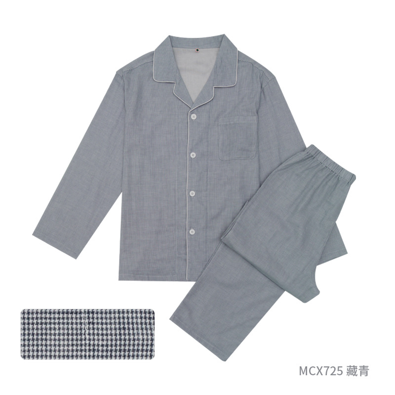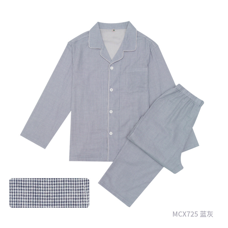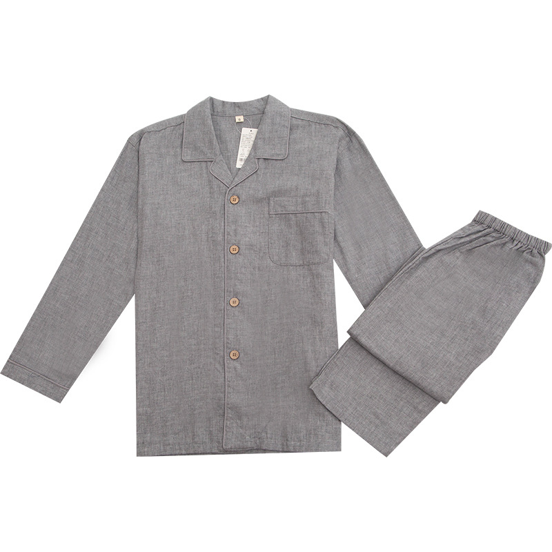 이중 거즈 잠옷 순면 홈웨어 봄 가을 남통 무인쇄 일본식 봄 가을 남녀 공용 대형 중년 노인 잠옷