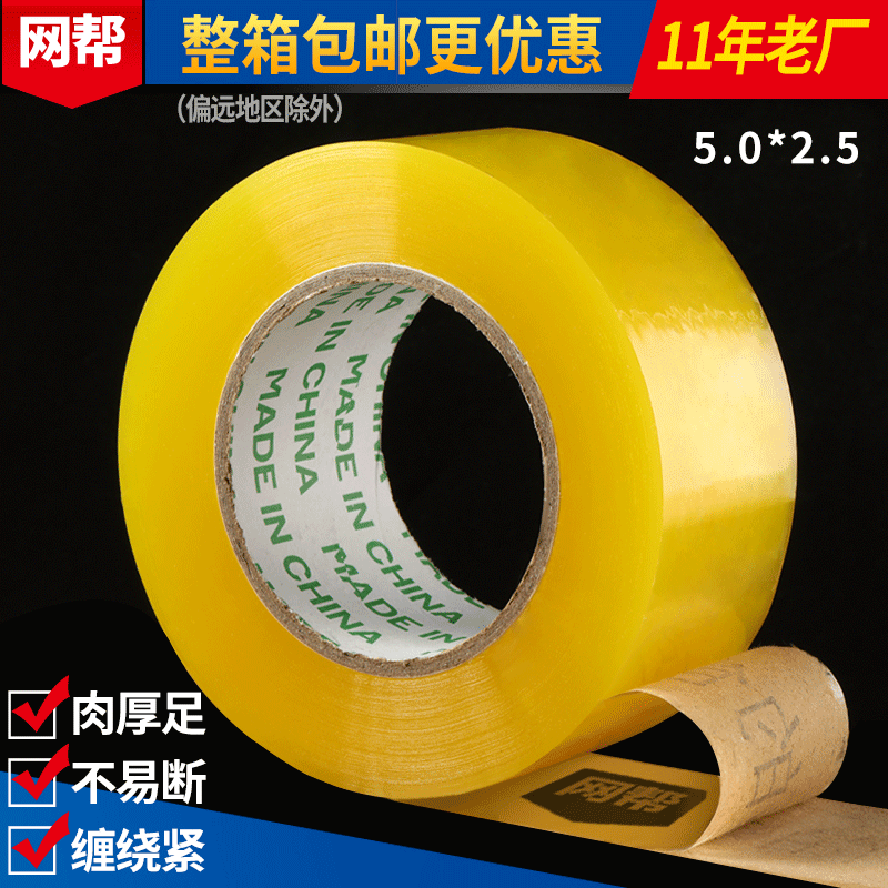 黄胶带纸透明胶带大量批发大卷宽打包胶带封箱胶带批发整箱封口胶