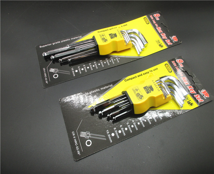 도매 바나듐 스틸 고정 도구 9 개 세트 중간 길이 확장 육각 미터 모양의 중공 구멍 알렌 렌치스토어 가기