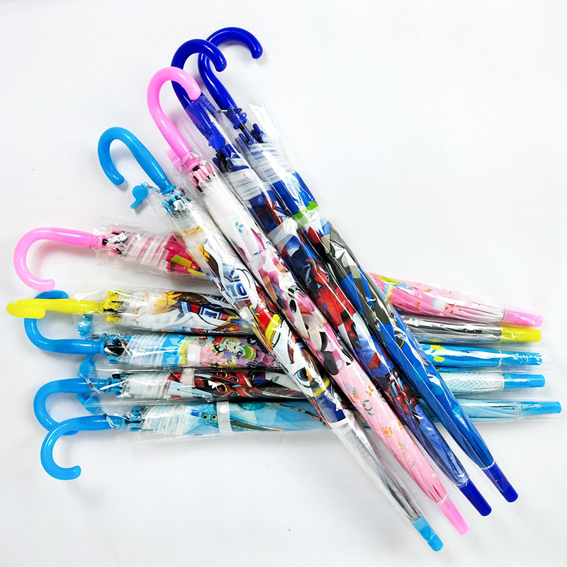 공장 도매 창조적 인 만화 어린이 투명 우산 빛 귀여운 직선 자동 우산 긴 손잡이 우산 우산