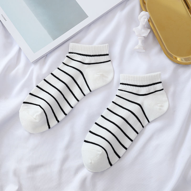 여름 신상 양말 여성용 순면 줄무늬 보트 양말 흑백 줄무늬 짧은 양말 학생 양말 트렌디한 여름 스타일