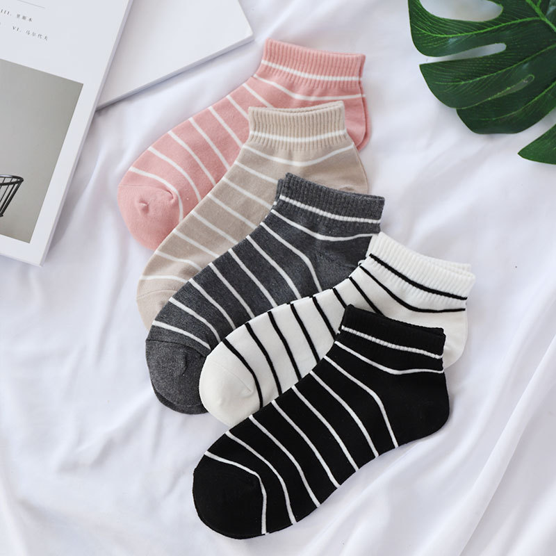 여름 신상 양말 여성용 순면 줄무늬 보트 양말 흑백 줄무늬 짧은 양말 학생 양말 트렌디한 여름 스타일스토어 가기