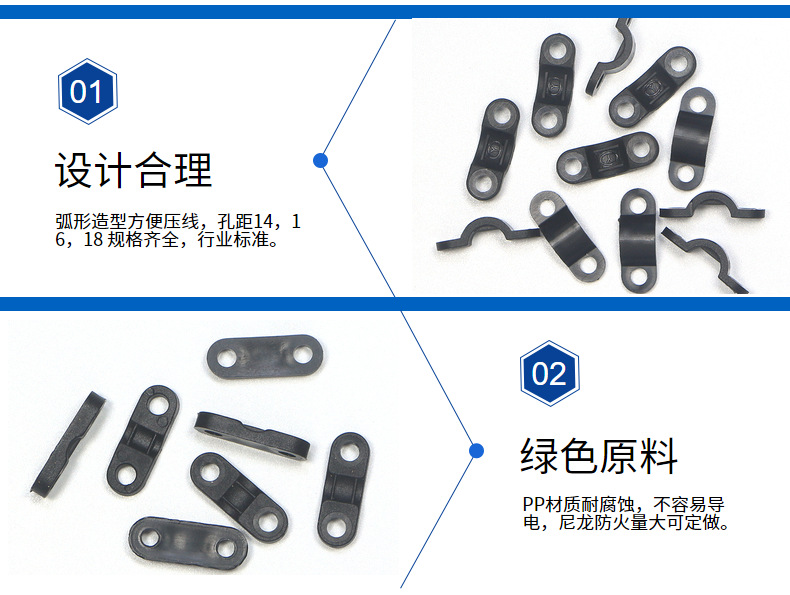 플라스틱 버클 나일론 와이어 압착 조각 구멍 간격 12/14/16/18 흑백 재고 대형 할인