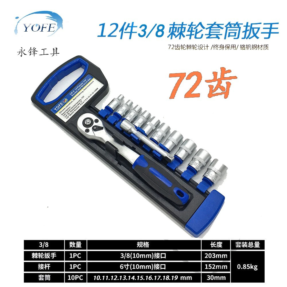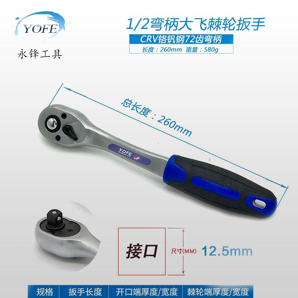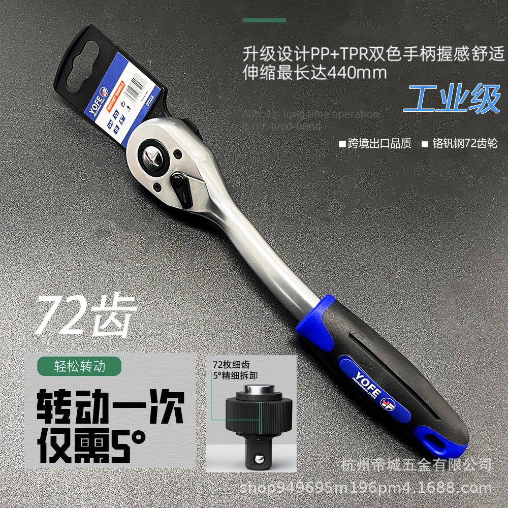 • 3/8 미디엄 플라이 블루 곡선 핸들 72개 치아*래칫 핸들*YOFE 브랜드