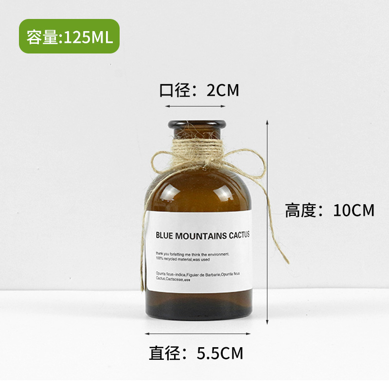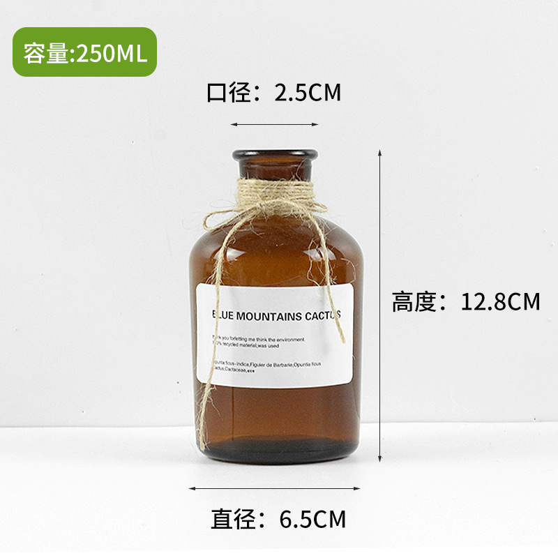 스타일 투명 다크 브라운 거실 장식 꽃 장식품 보석 수경 유리 시약 꽃병에 북유럽 작은 다크 브라운 병