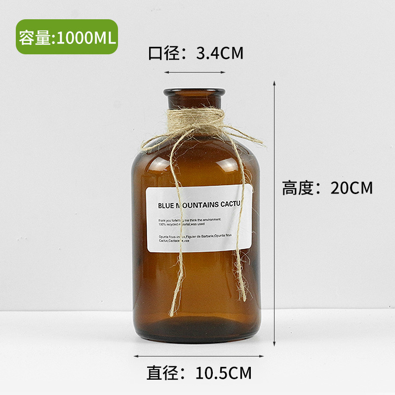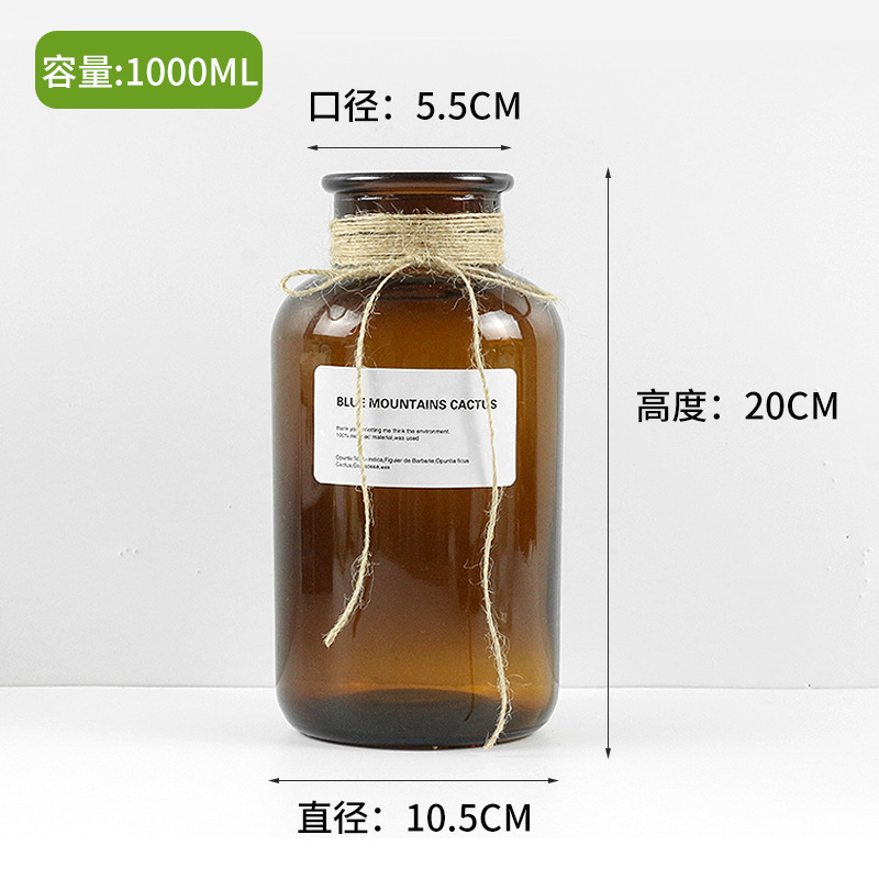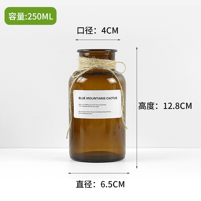 스타일 투명 다크 브라운 거실 장식 꽃 장식품 보석 수경 유리 시약 꽃병에 북유럽 작은 다크 브라운 병스토어 가기
