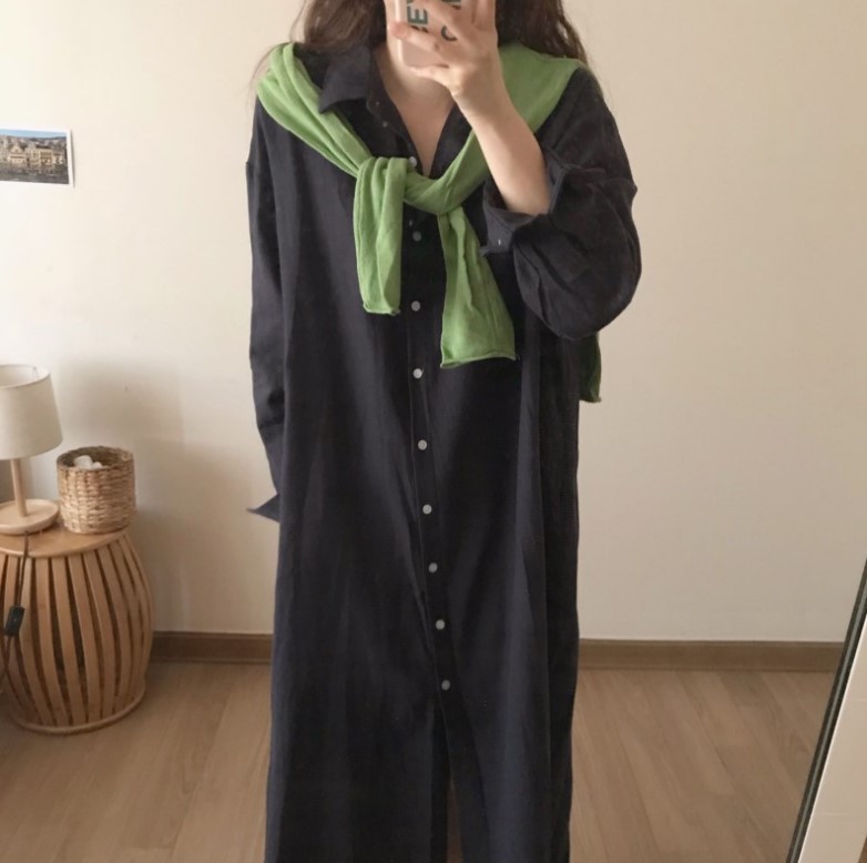 388 한국 캐주얼 셔츠 스커트 2025 봄 신작 여성 대형 루즈 셔츠 스커트 롱 코튼과 린넨 대외 무역스토어 가기