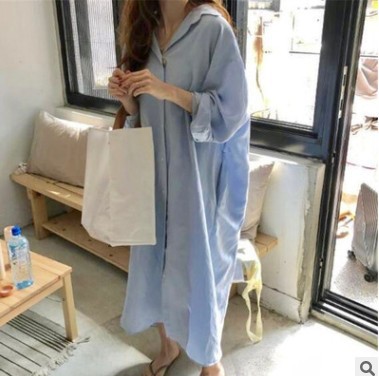 388 한국 캐주얼 셔츠 스커트 2025 봄 신작 여성 대형 루즈 셔츠 스커트 롱 코튼과 린넨 대외 무역