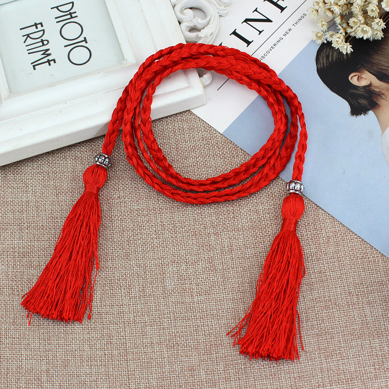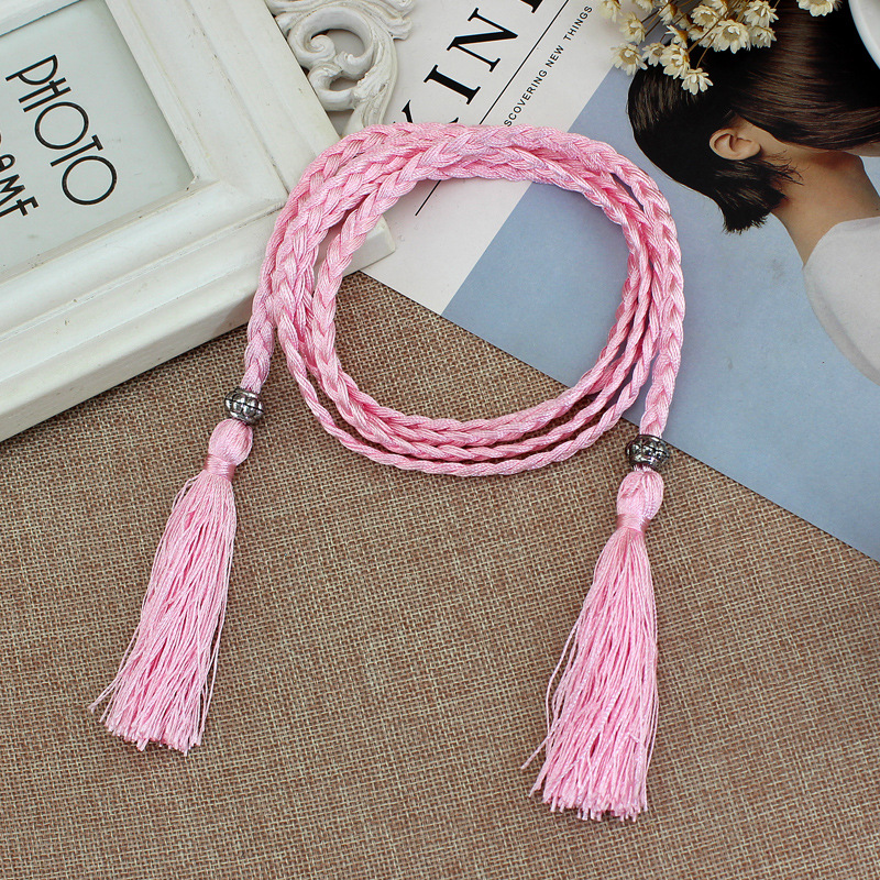 고급 매듭 장식 로프 허리 체인 여성의 국가 스타일 모리 여성의 짠 술 면화 벨트 헤어 벨트의 세대