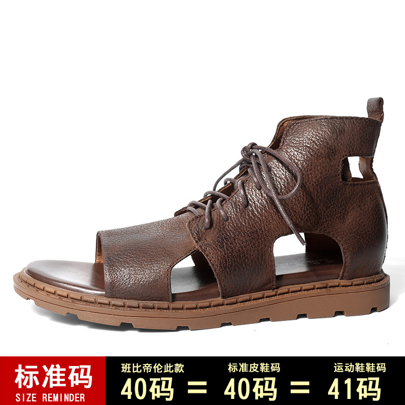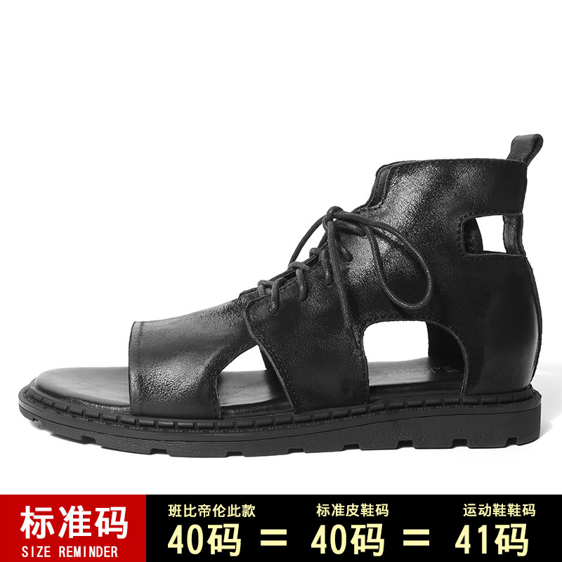 여름 하이탑 정품 가죽 남성 샌들 트렌디 영국 소가죽 샌들 남성용 모든 매치 로마 샌들 캐주얼 비치 남성 신발스토어 가기