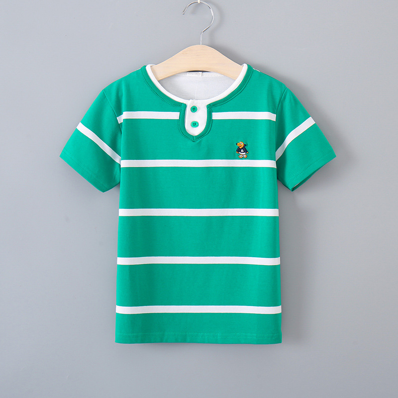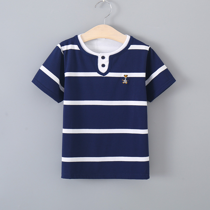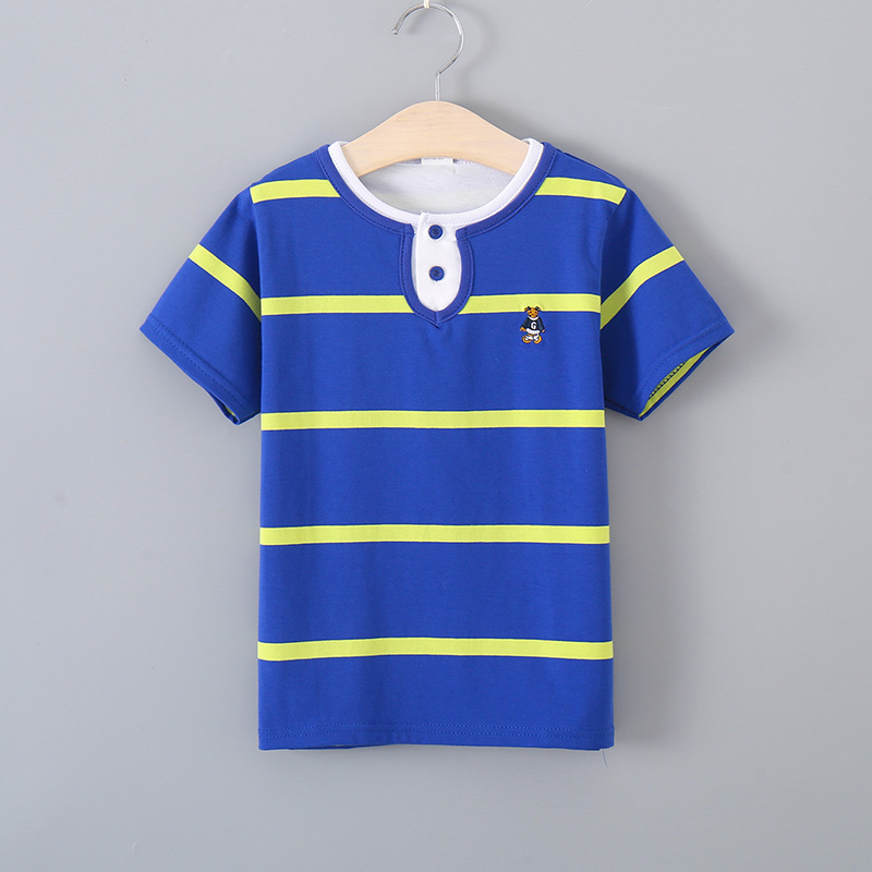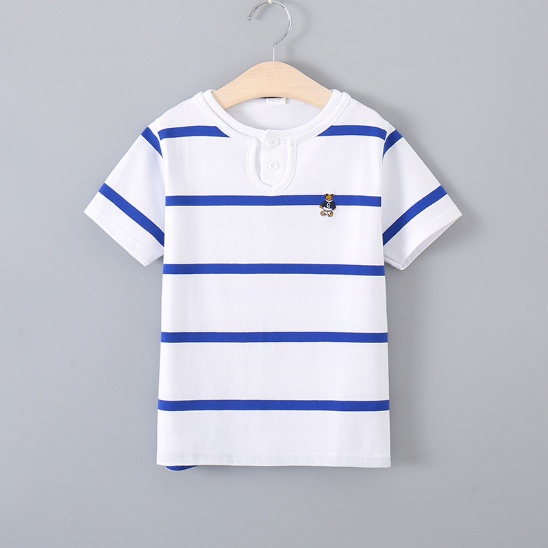 발라부비 남아 반팔 티셔츠 여아 신상 여름옷 중대형 아동 순면 스트라이프 더블넥 라운드넥 폴로
