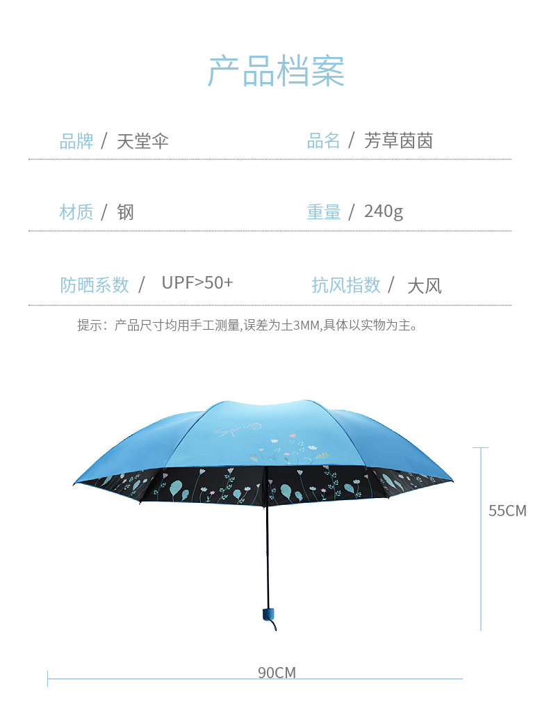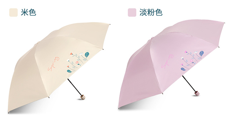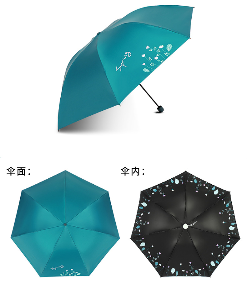 낙원 우산 도매 울트라 라이트 3 개 접는 태양 우산 검정 고무 태양 우산 인쇄 소 꽃 우산 풀 미니 우산 연필 우산