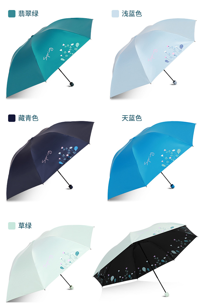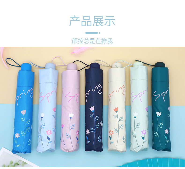 낙원 우산 도매 울트라 라이트 3 개 접는 태양 우산 검정 고무 태양 우산 인쇄 소 꽃 우산 풀 미니 우산 연필 우산스토어 가기