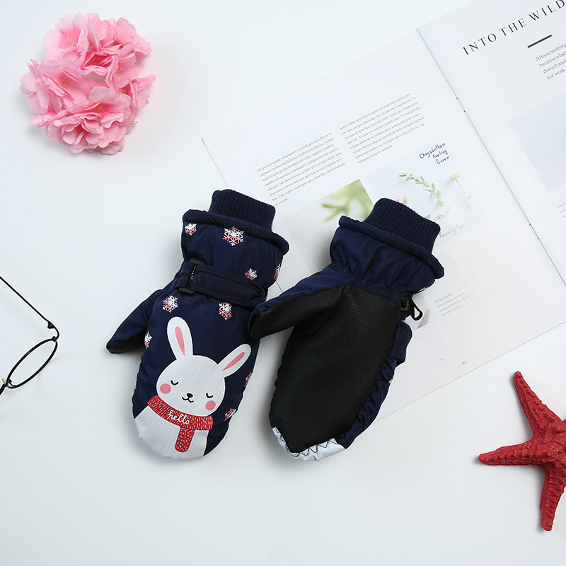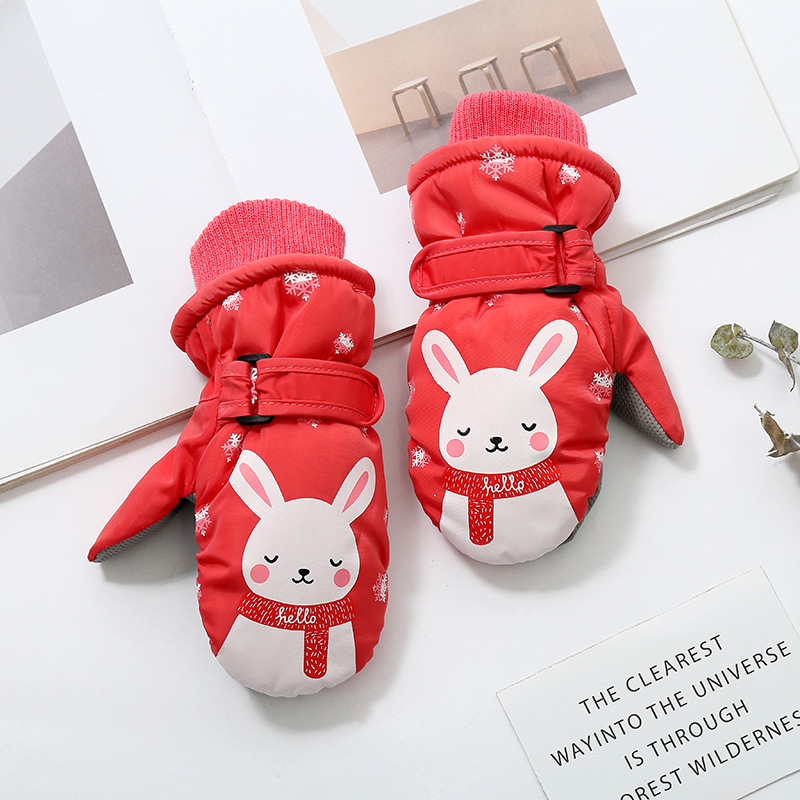 새로운 한국 스타일 어린이 벨벳 따뜻한 편안한 장갑 겨울 끈 두꺼운 만화 토끼 스키 장갑