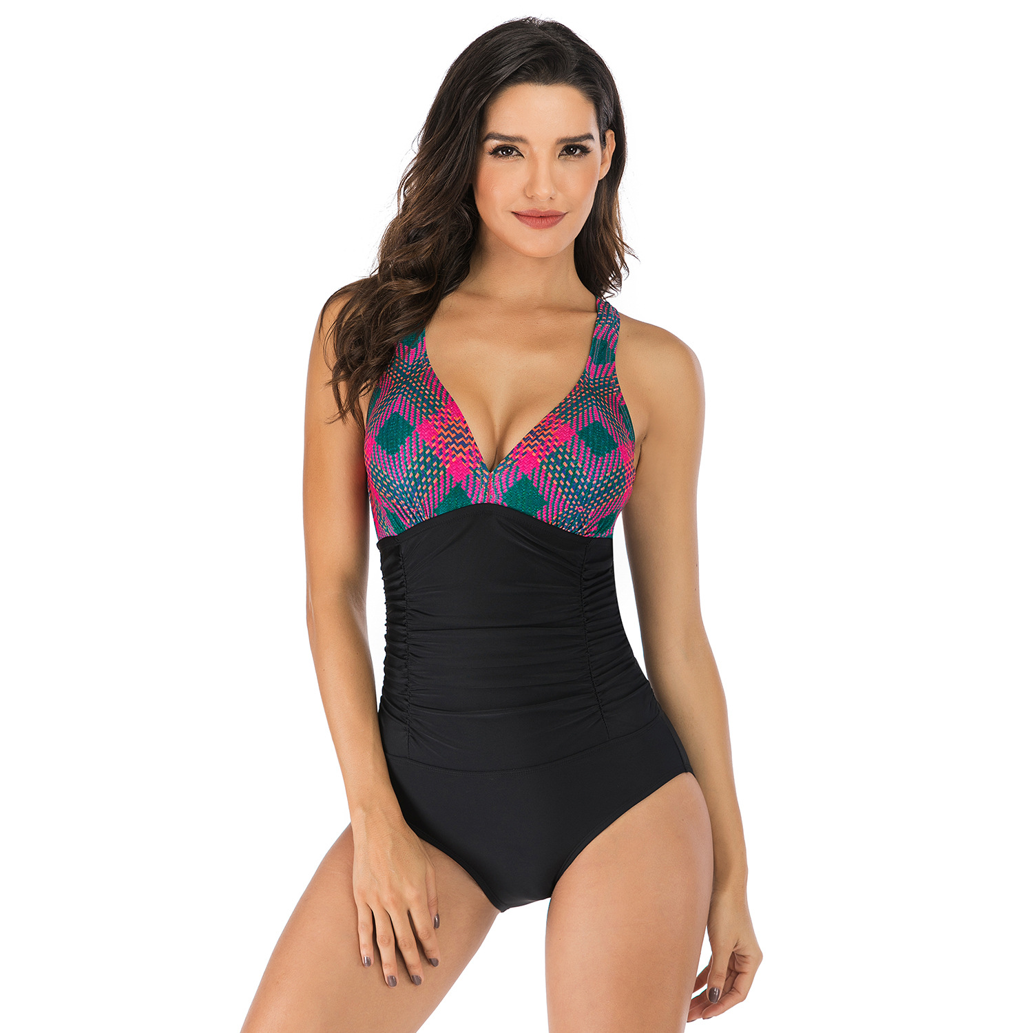 스팟 국경 꽉 유럽과 미국의 섹시한 원피스 수영복 여성용 아마존 수영복 배를 덮는 수영복 여성용 원피스 수영복