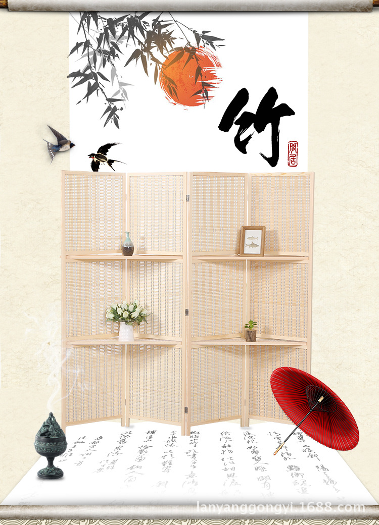 공장 공급 화면 파티션 간단한 모바일 침실 거실 입구 나무 접는 대나무 스크린스토어 가기