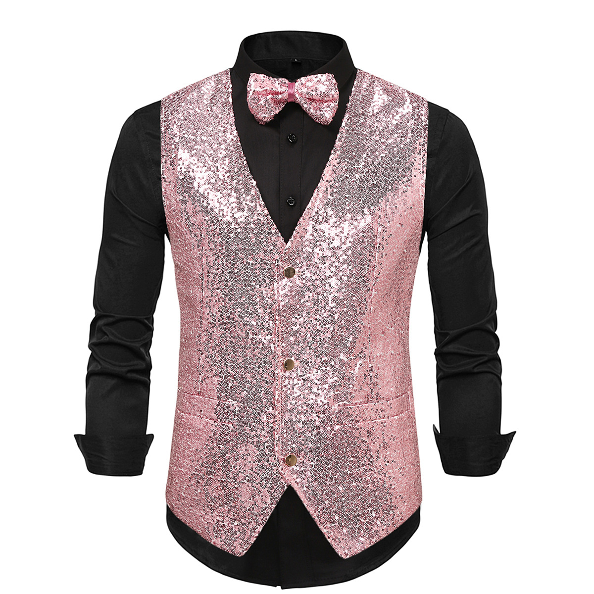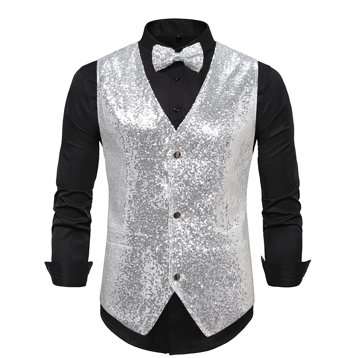 가을과 겨울 새로운 패션 밝은 반짝이 재킷 아마존 도매 구매 남성 비즈 양복 조끼 나비 넥타이 MJ30스토어 가기
