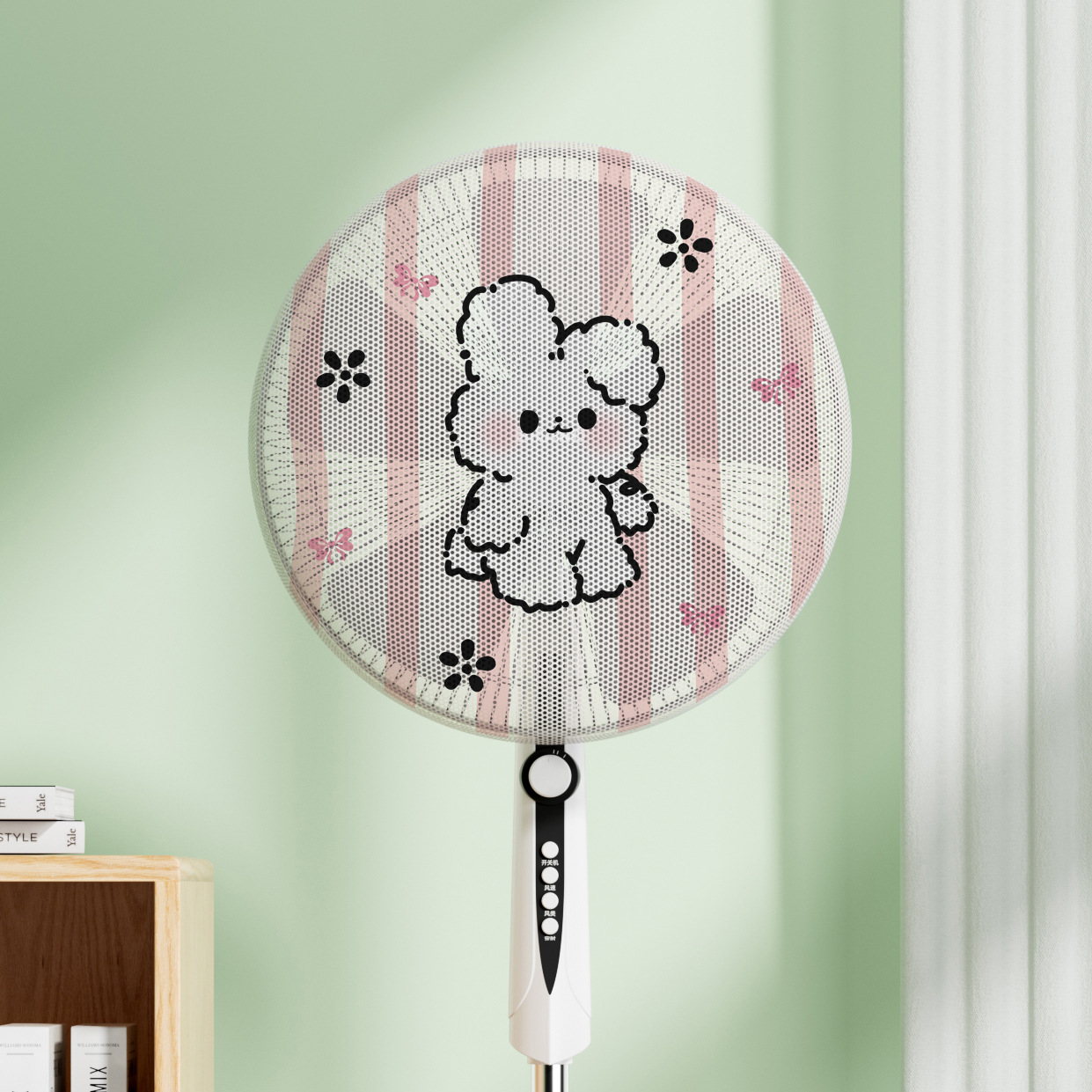 下图为草莓熊网眼风扇罩 防夹手风扇罩