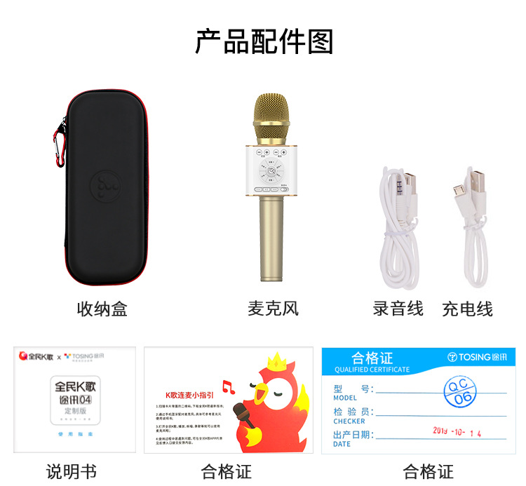 Tuxun 04 마이크 오디오 마이크 통합 모바일 TV 전국 K 가수 홈 노래 무선 블루투스 공장