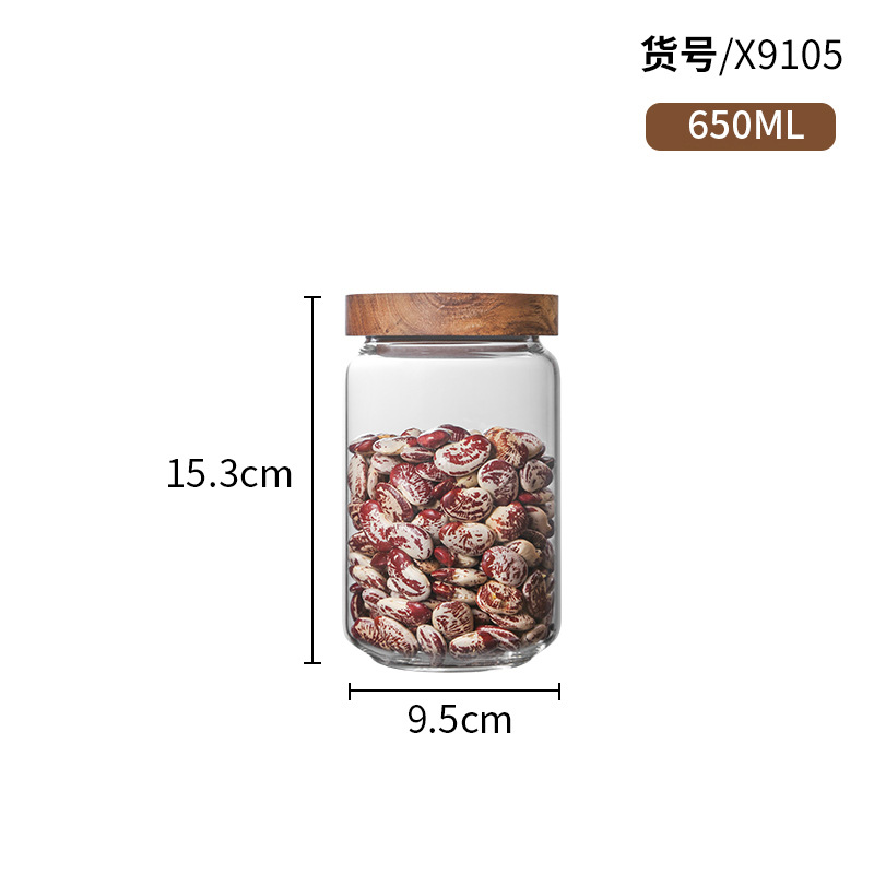 크리 에이 티브 가정용 유리 차 캔 레트로 아카시아 나무 뚜껑 밀봉 캔 시리얼 저장 상자 주방 저장 항아리 도매