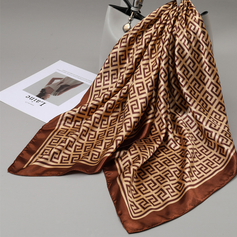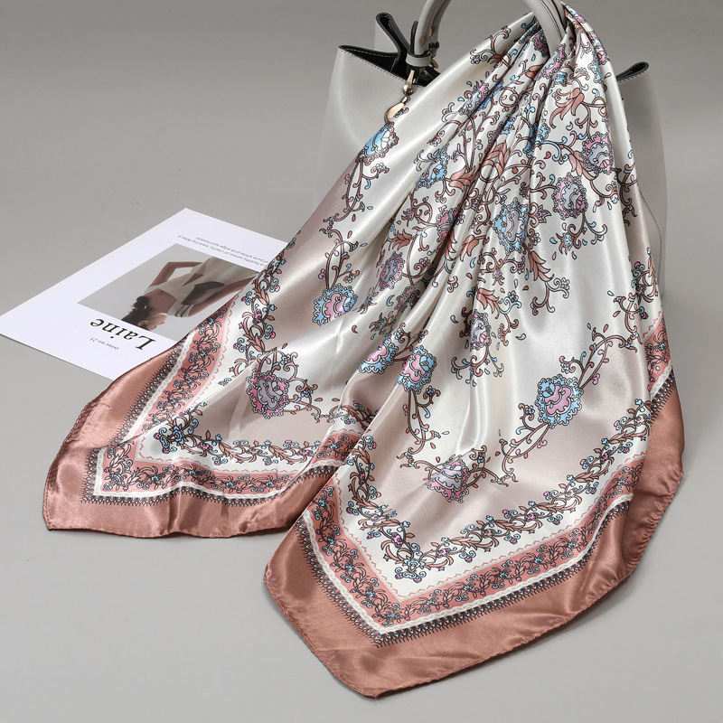 2024 봄과 가을 새로운 항저우 사계절 대형 광장 인쇄 실크 스카프 여성의 얇은 실크 90x90cm 봄 스카프