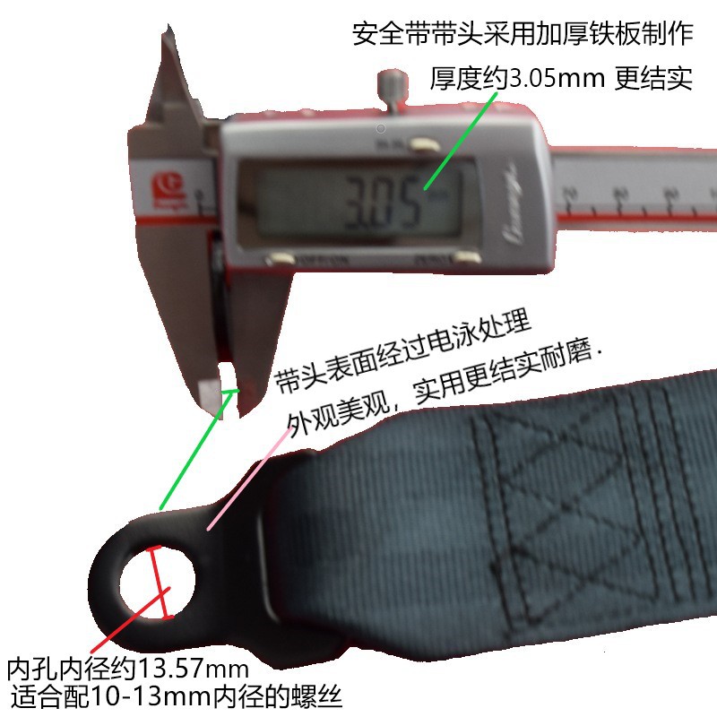 • 검정색 측면 삽입형 2점식 안전벨트 1.3m