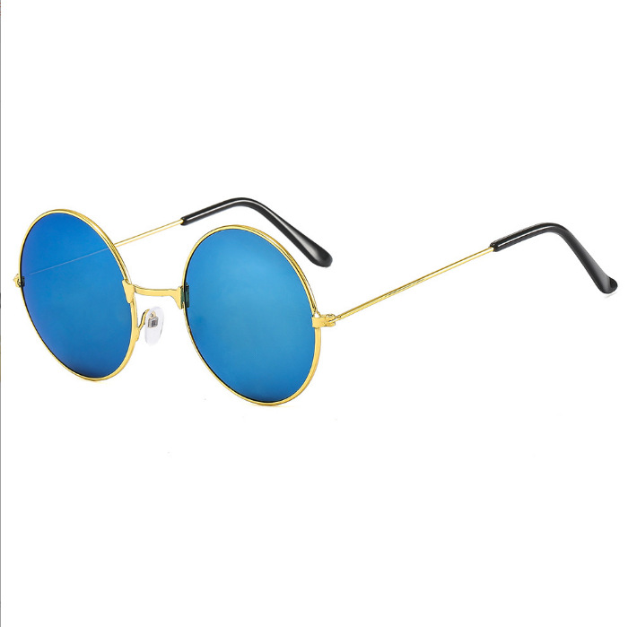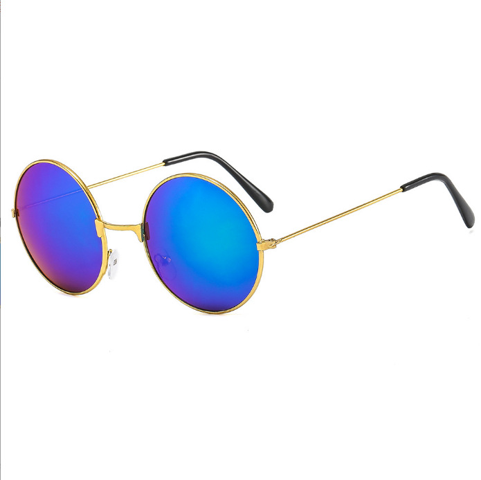 메탈 원형 선글라스, 레트로 선글라스, 남녀공용 안경, 왕자형 안경, 평면 안경, 컬러 반사, 패셔너블한 스타일