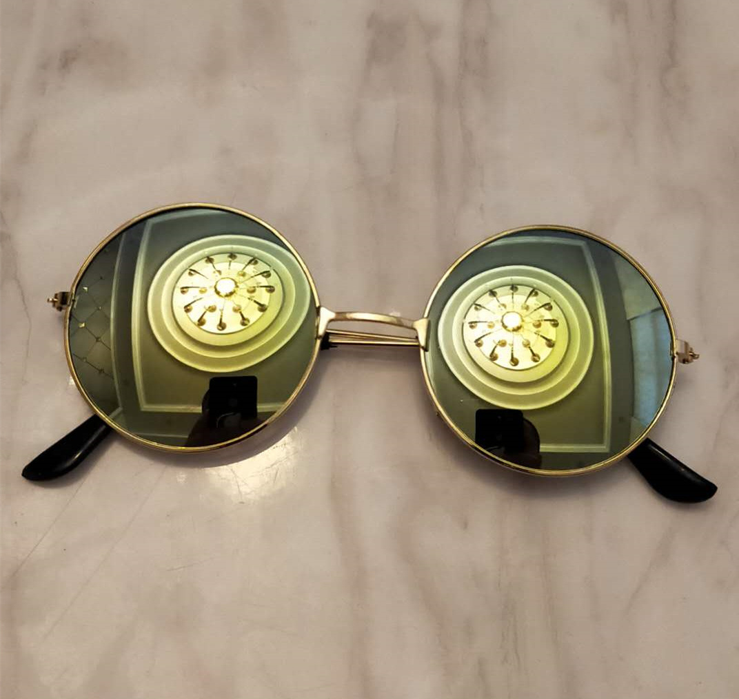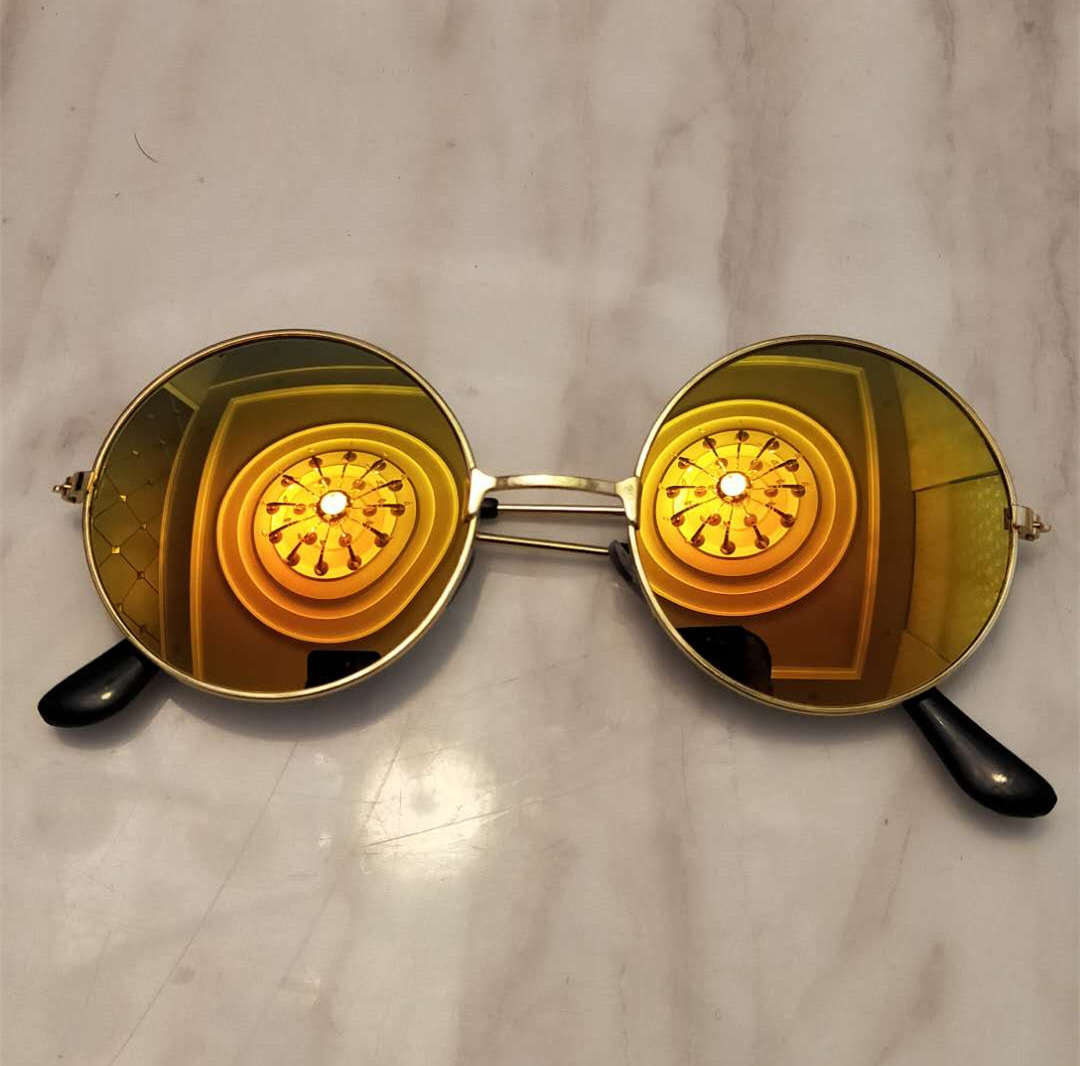 메탈 원형 선글라스, 레트로 선글라스, 남녀공용 안경, 왕자형 안경, 평면 안경, 컬러 반사, 패셔너블한 스타일스토어 가기