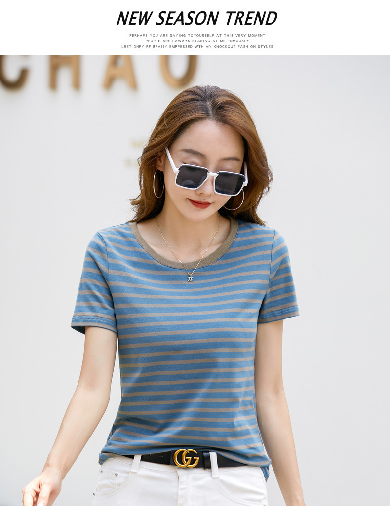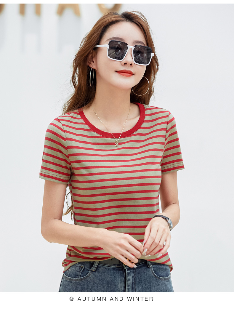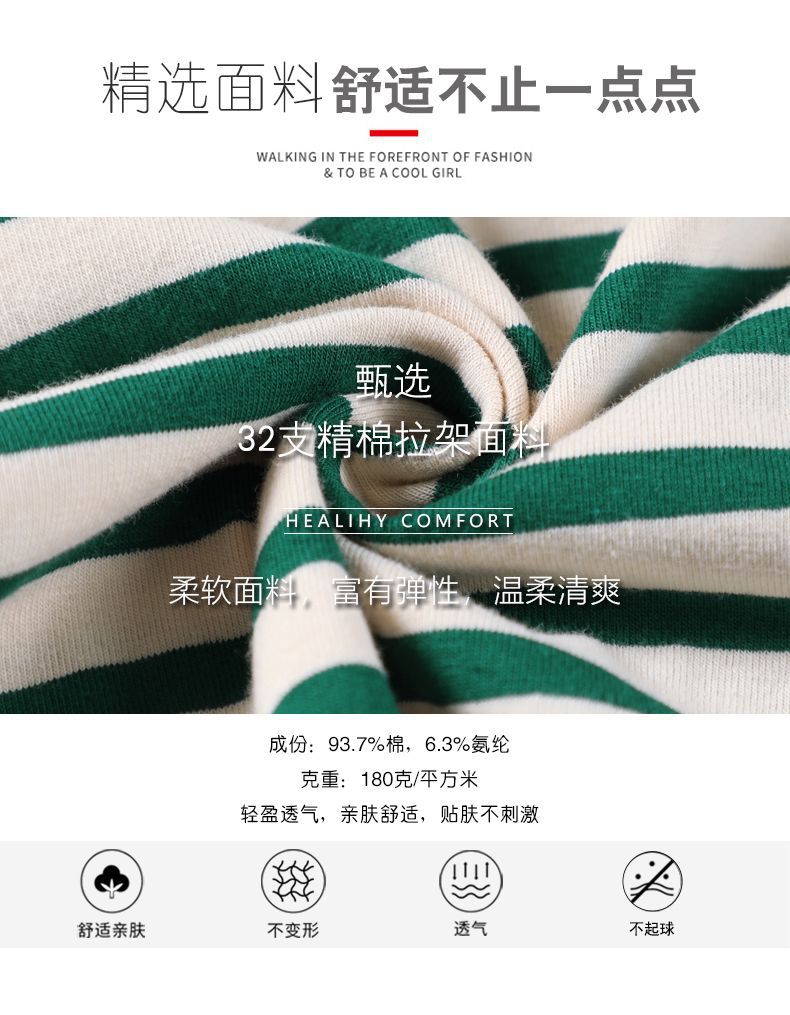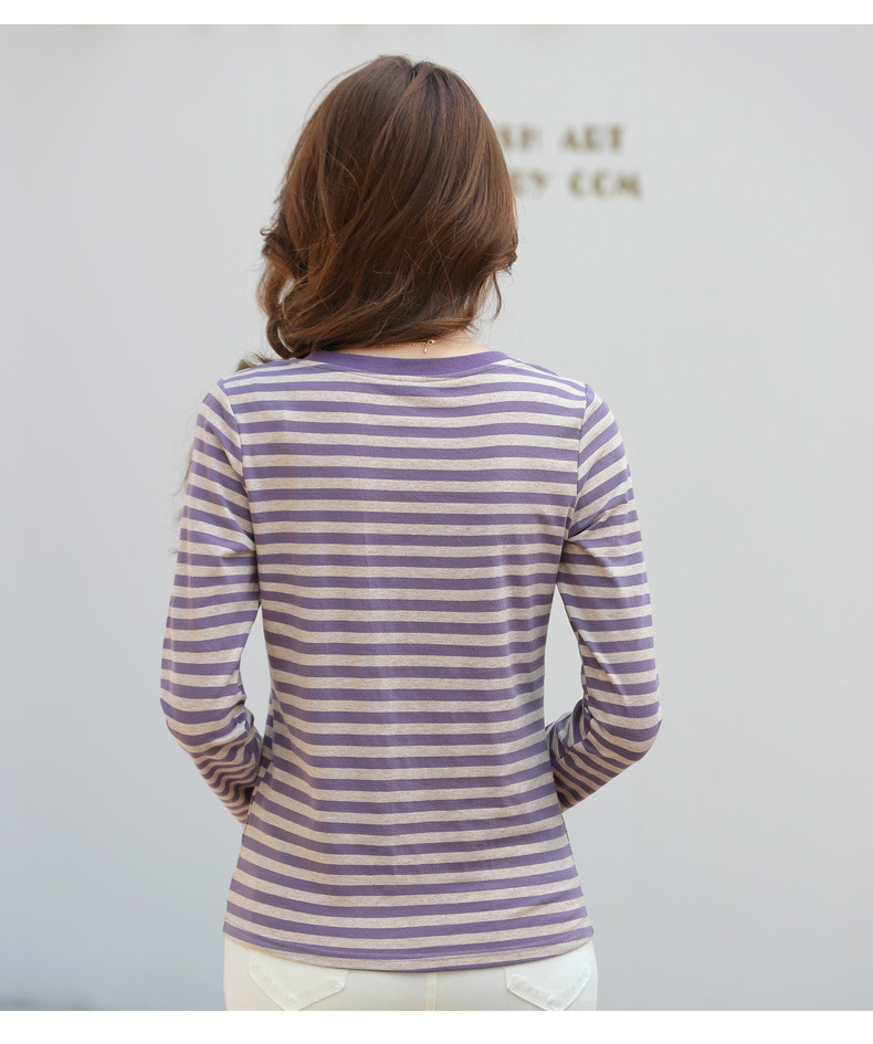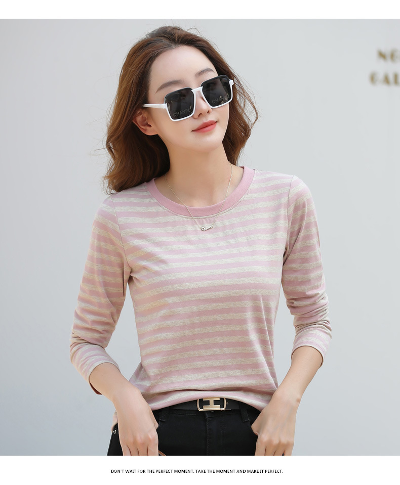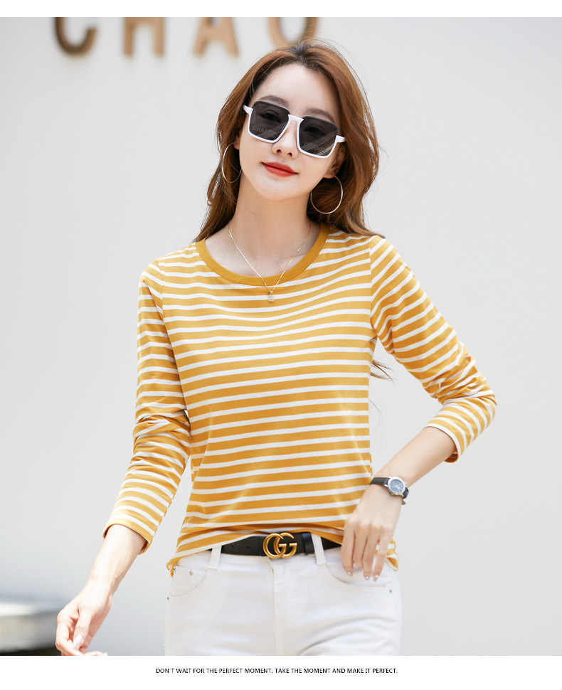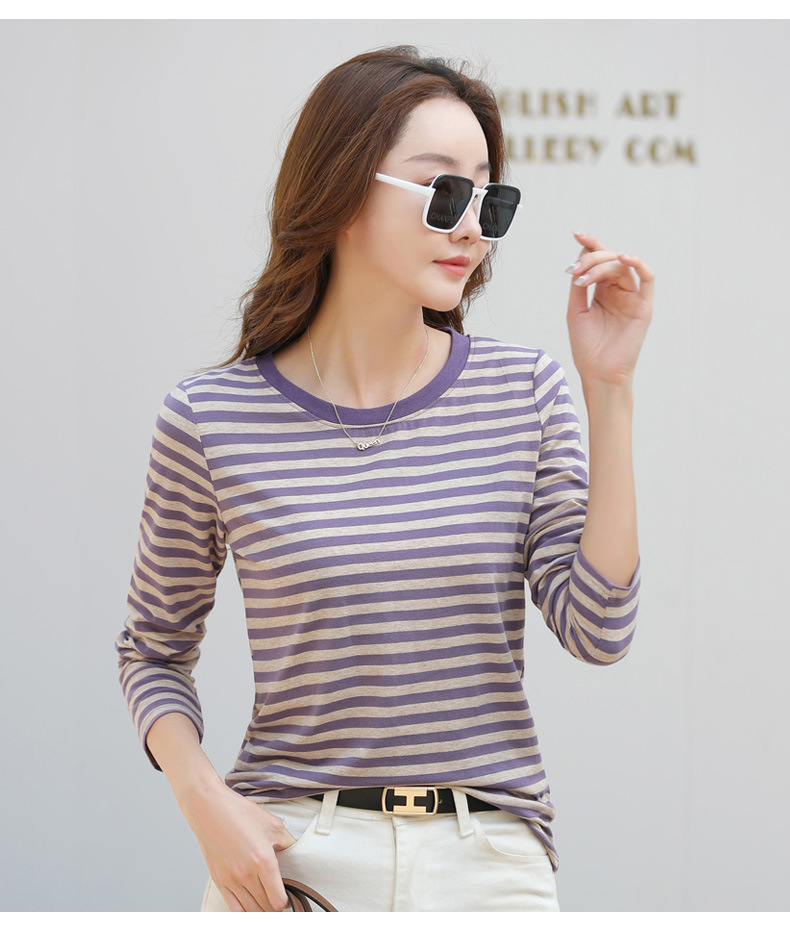 367 스트라이프 라운드넥 긴팔 여성 티셔츠 가을 겨울 다용도 한국 스타일 신선한 레트로 티셔츠 초가을 상의 트렌디