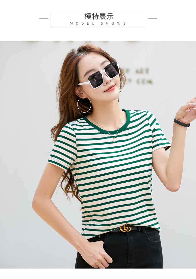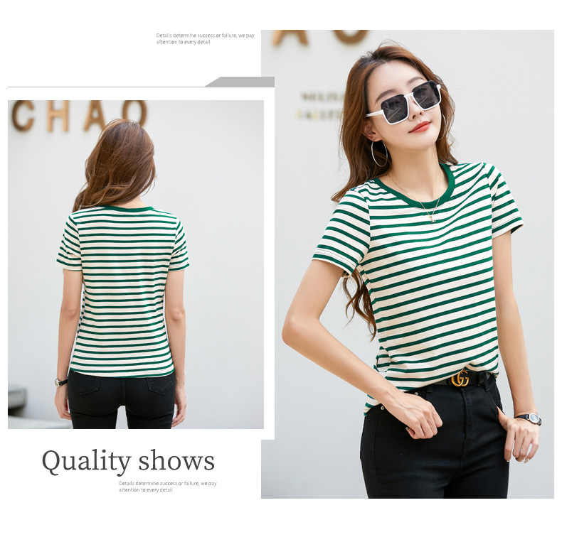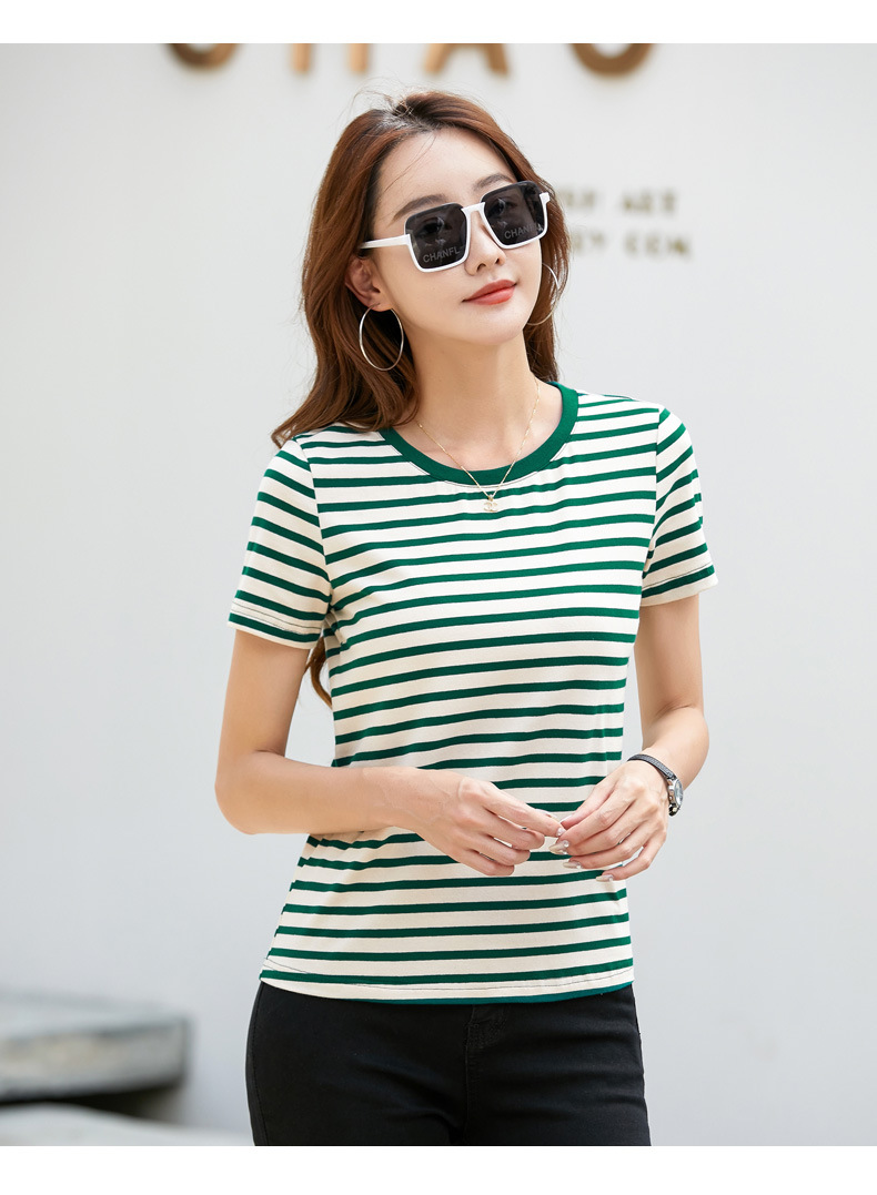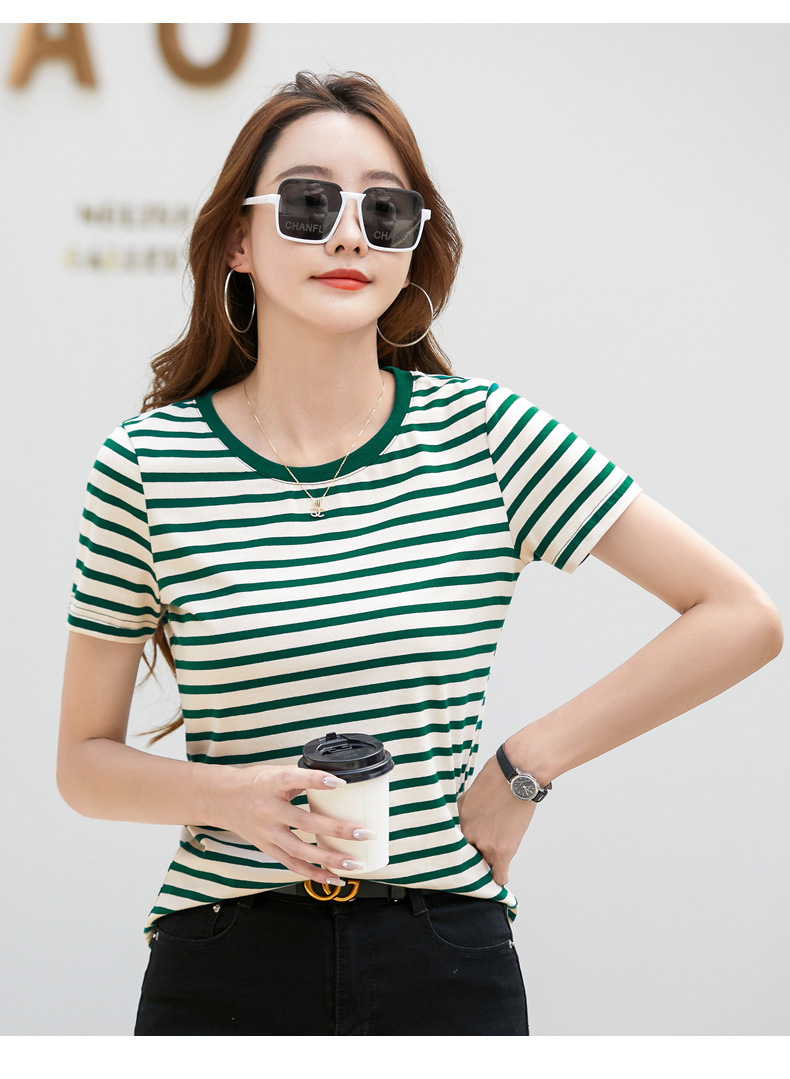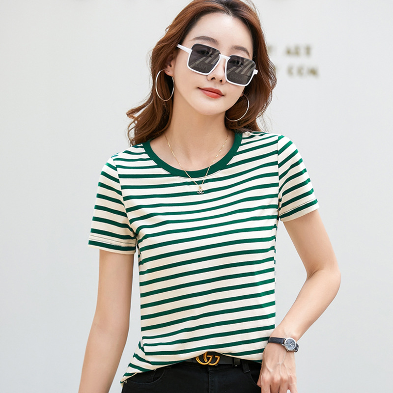 • 녹색 스트립 짧은 소매