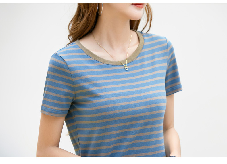 • 브이넥 블루 스트라이프 반소매
