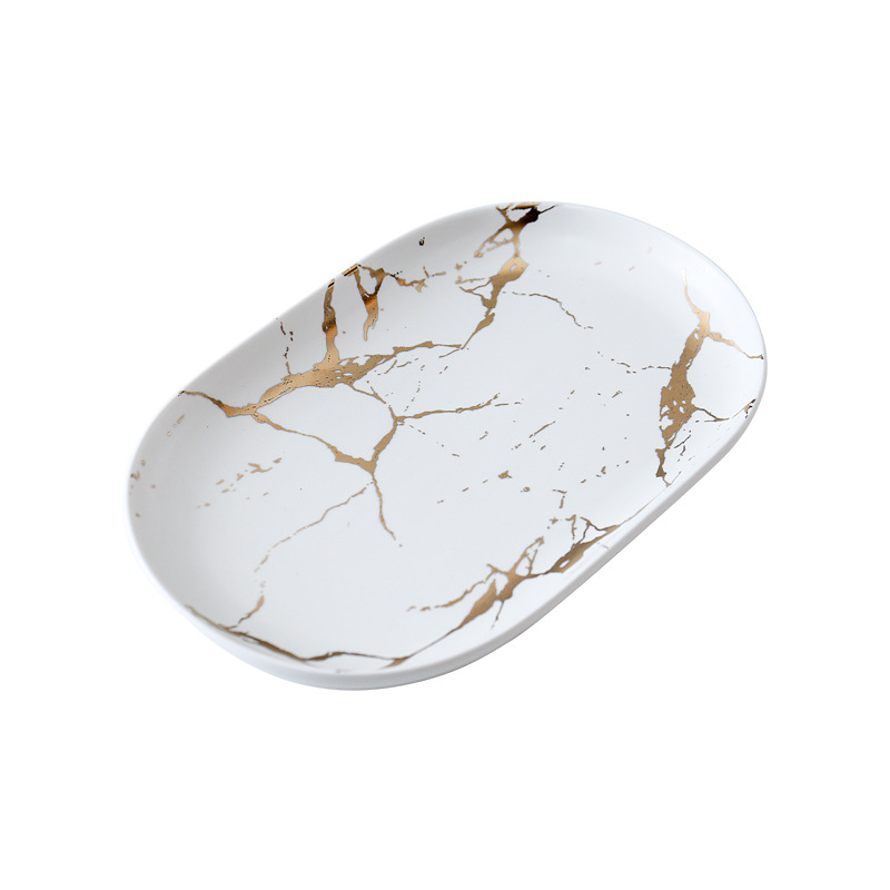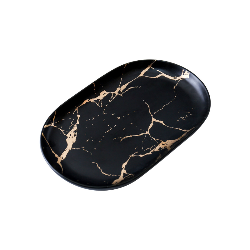 大理石纹金椭圆盘:25x15.8x2.4CM