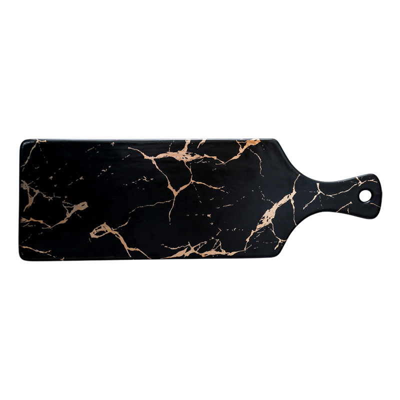 【淘宝指导价】:大理石纹金长方披萨盘:64元