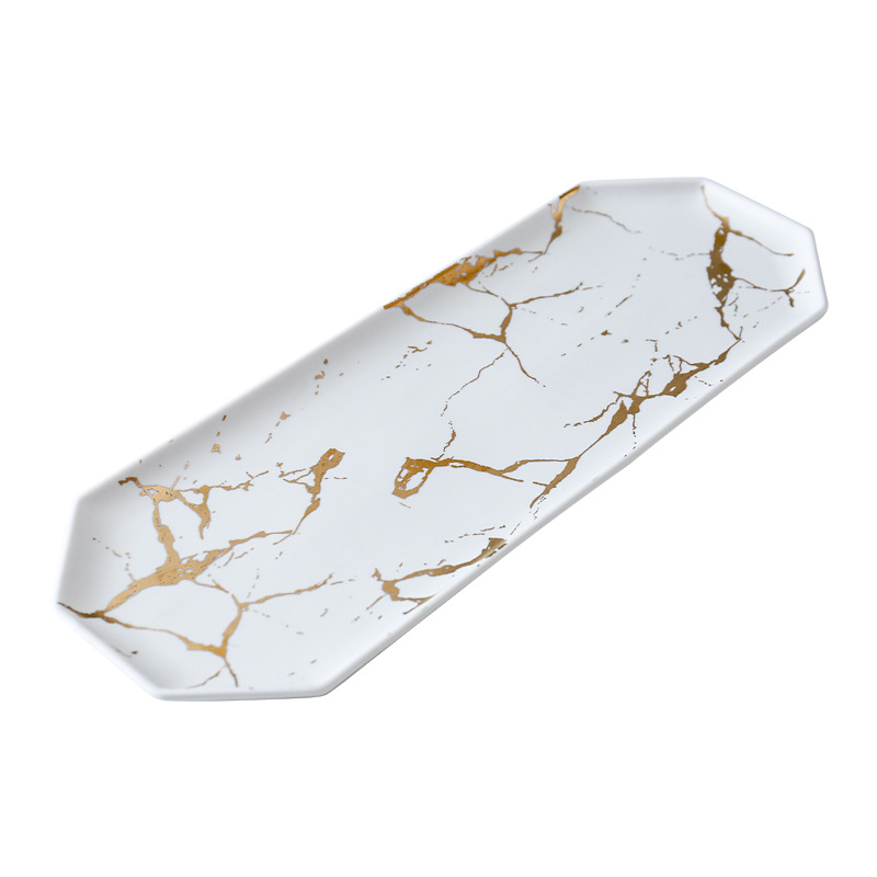 大理石纹金长款八角盘: 1只/盒 24盒/箱 43*18*40CM 15kg