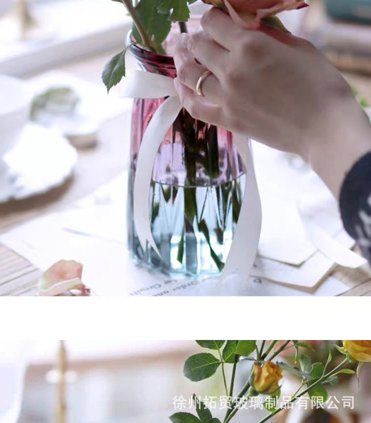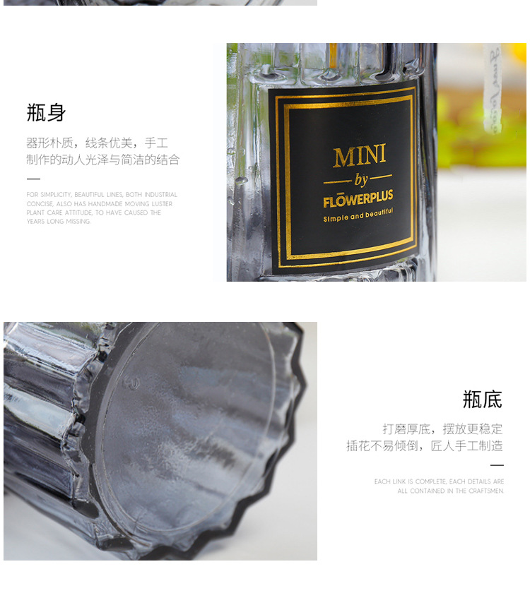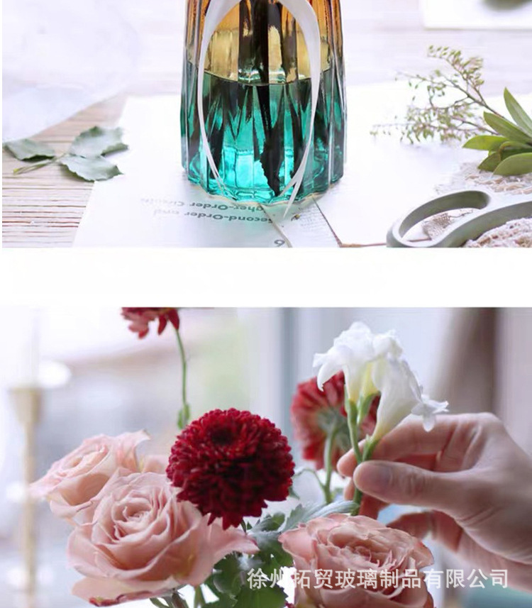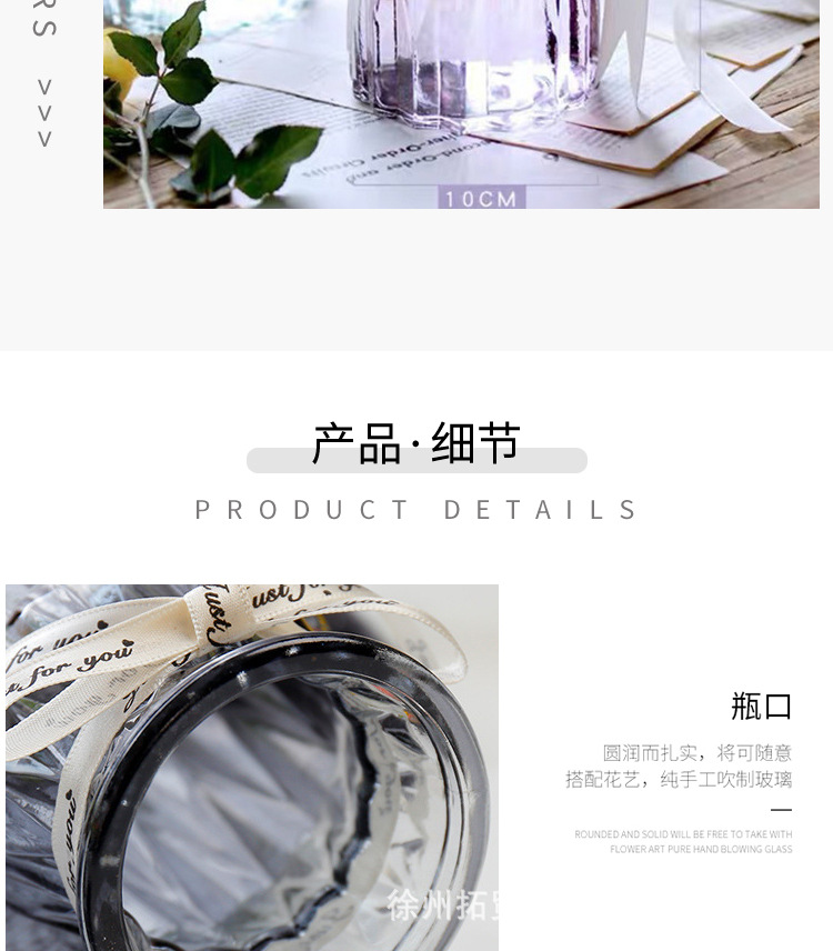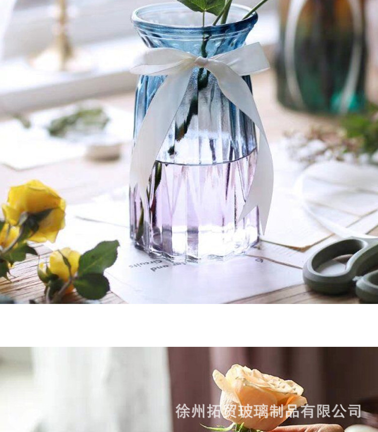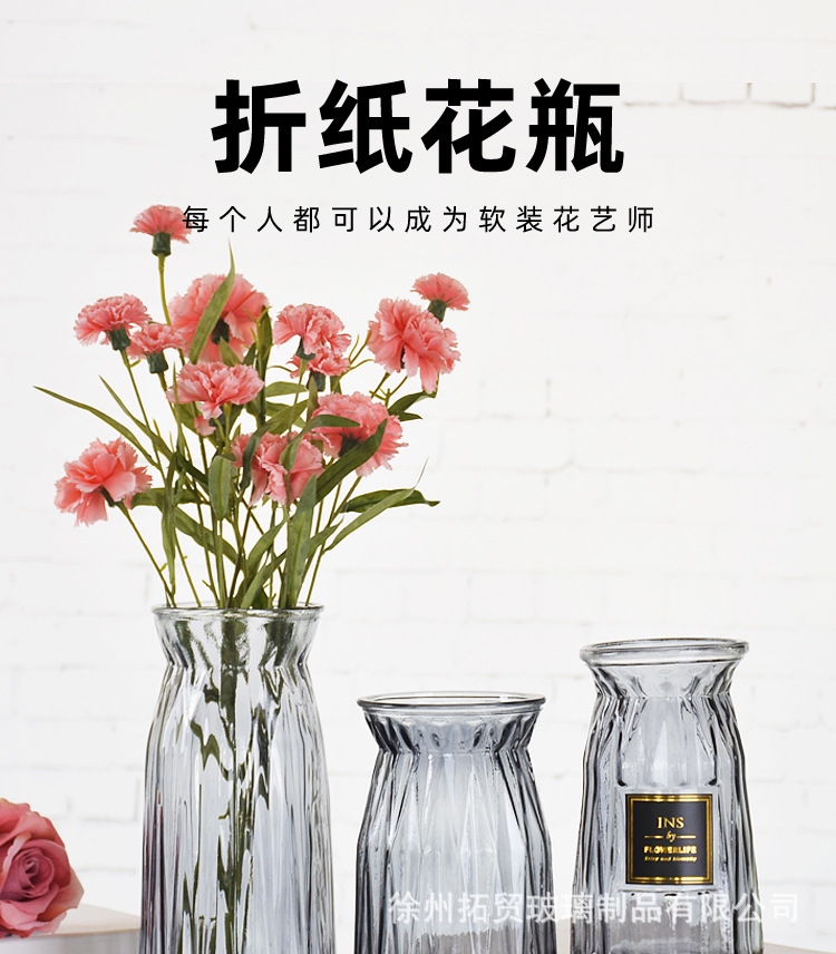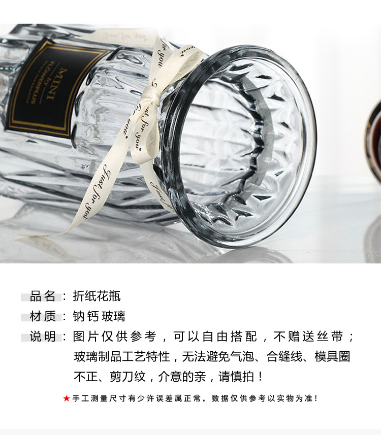 花瓶表面有折纸造型,玻璃质感,适合家居插花