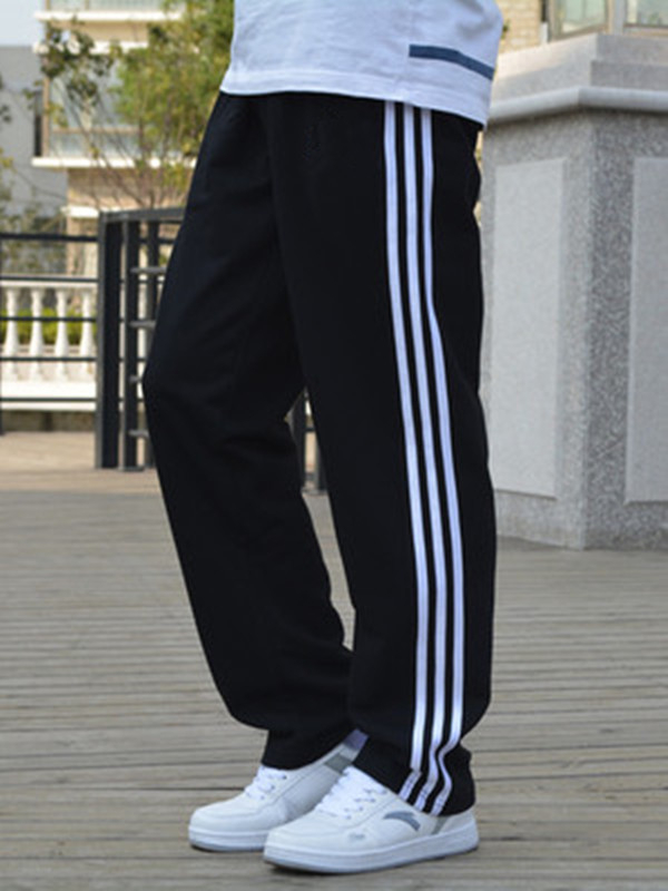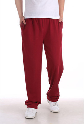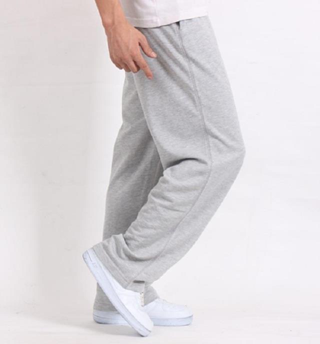 봄과 가을 새로운 중간 두꺼운 단색 남성용 초대형 스포츠 바지 면과 폴리에스터 초대형 캐주얼 바지 뚱뚱한 남성용 바지