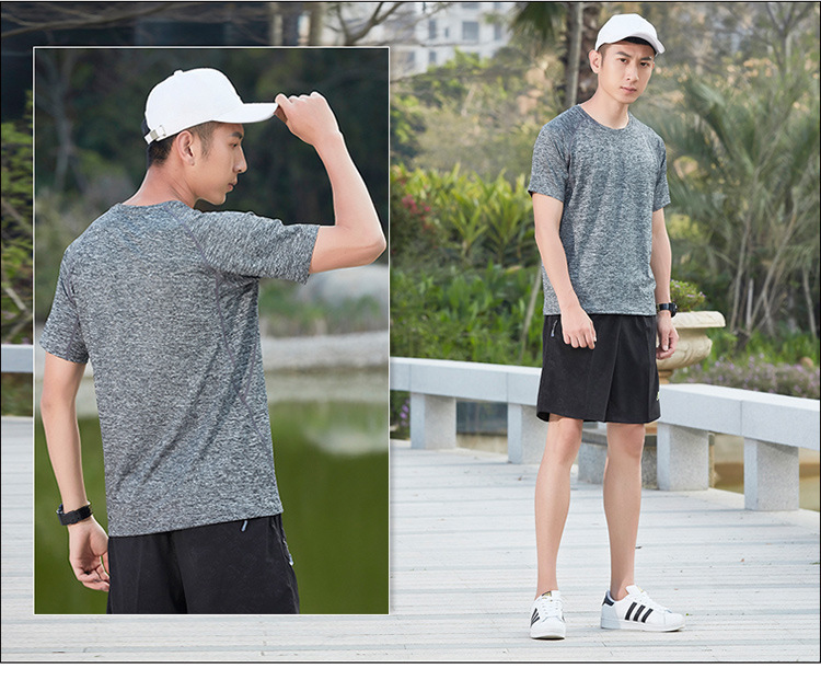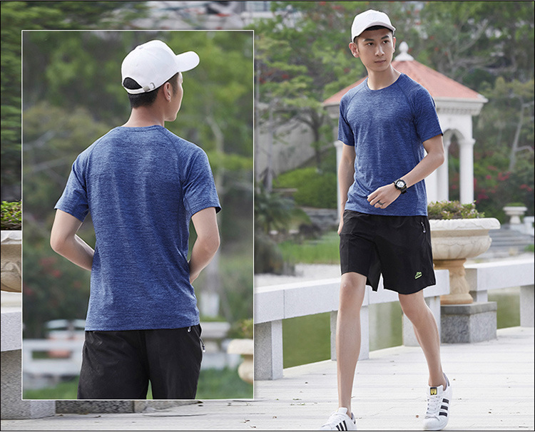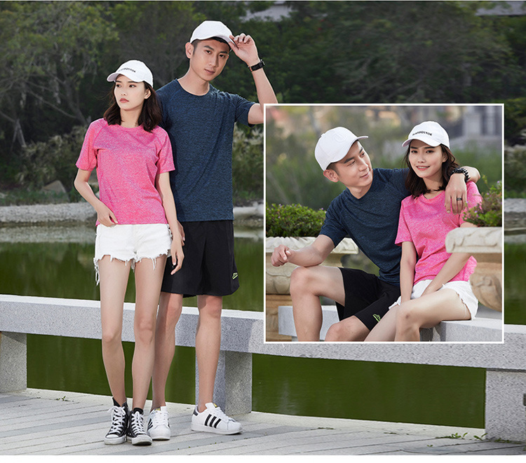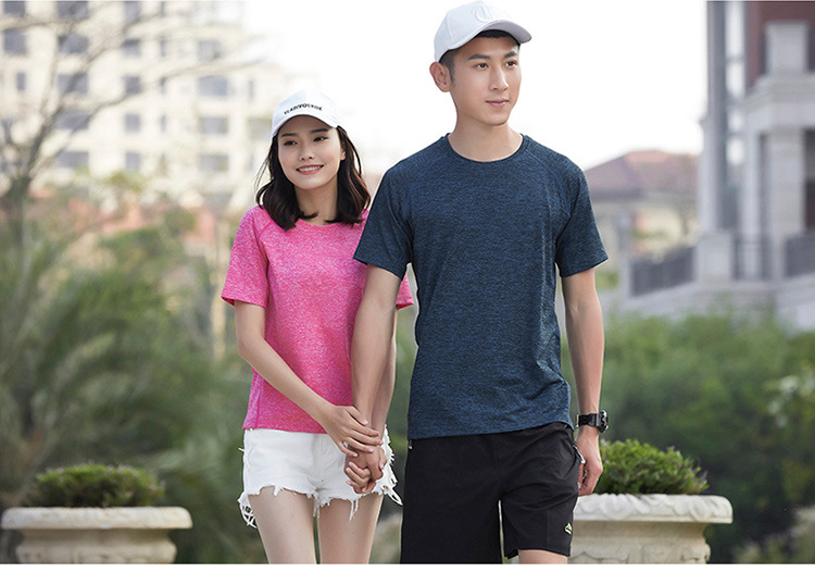 대외 무역 새로운 여름 속건 탄성 반팔 커플 티셔츠 유럽과 미국 플러스 사이즈 뚱뚱한 남자 스포츠 레저 피트니스 언더 셔츠스토어 가기
