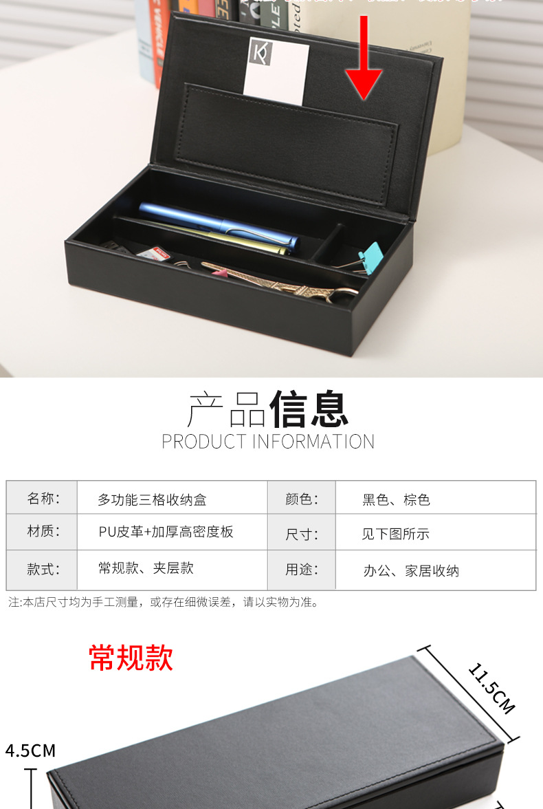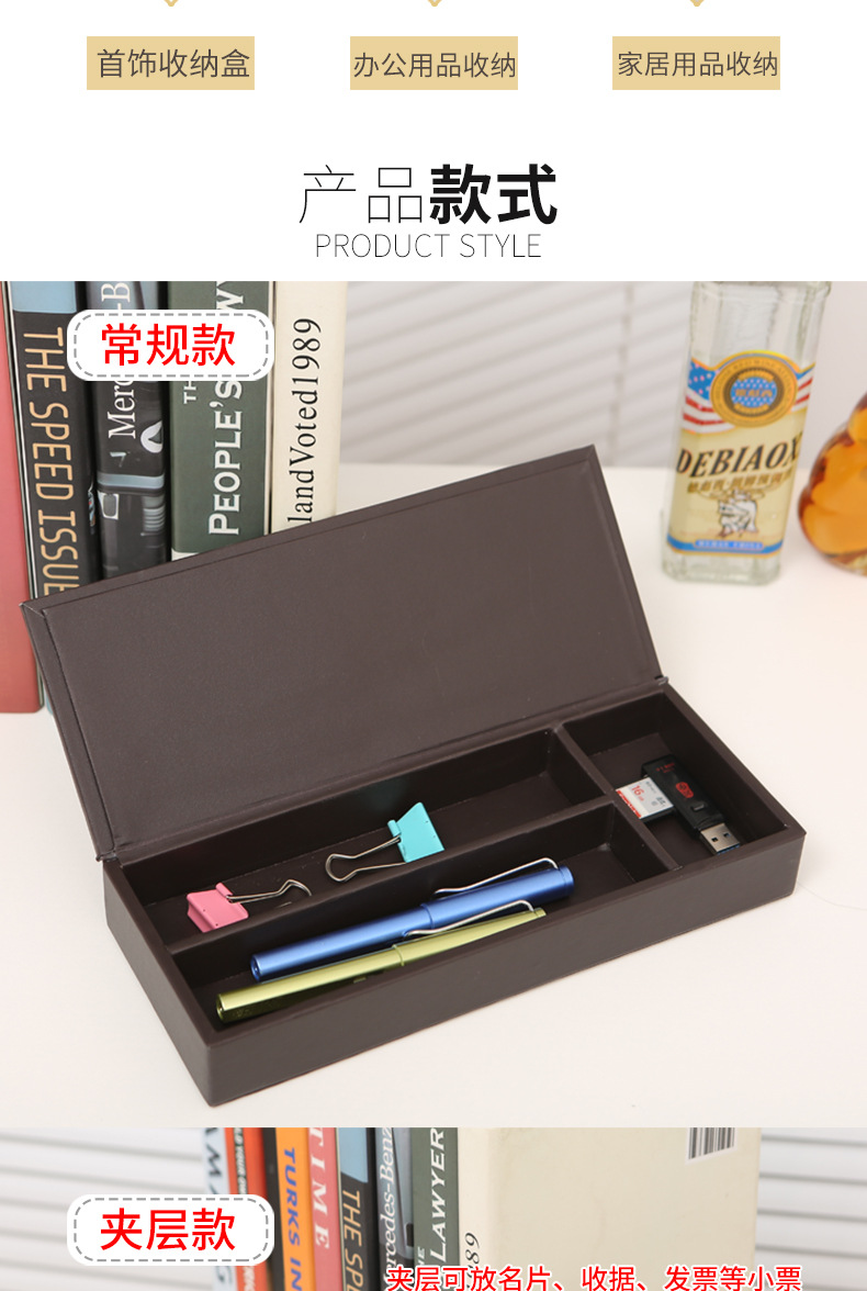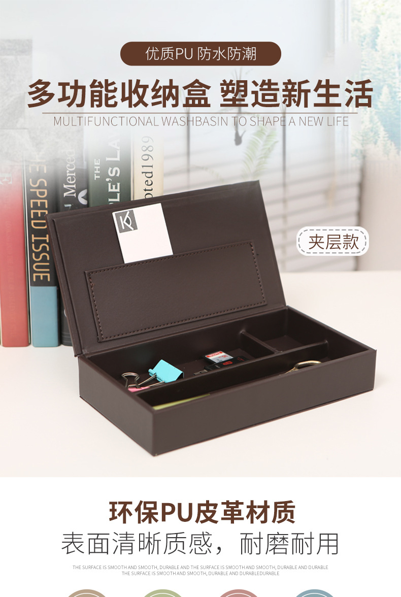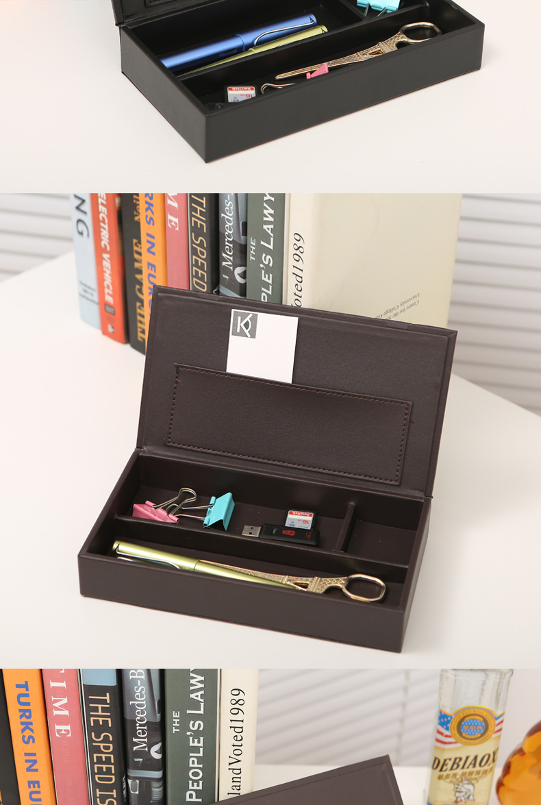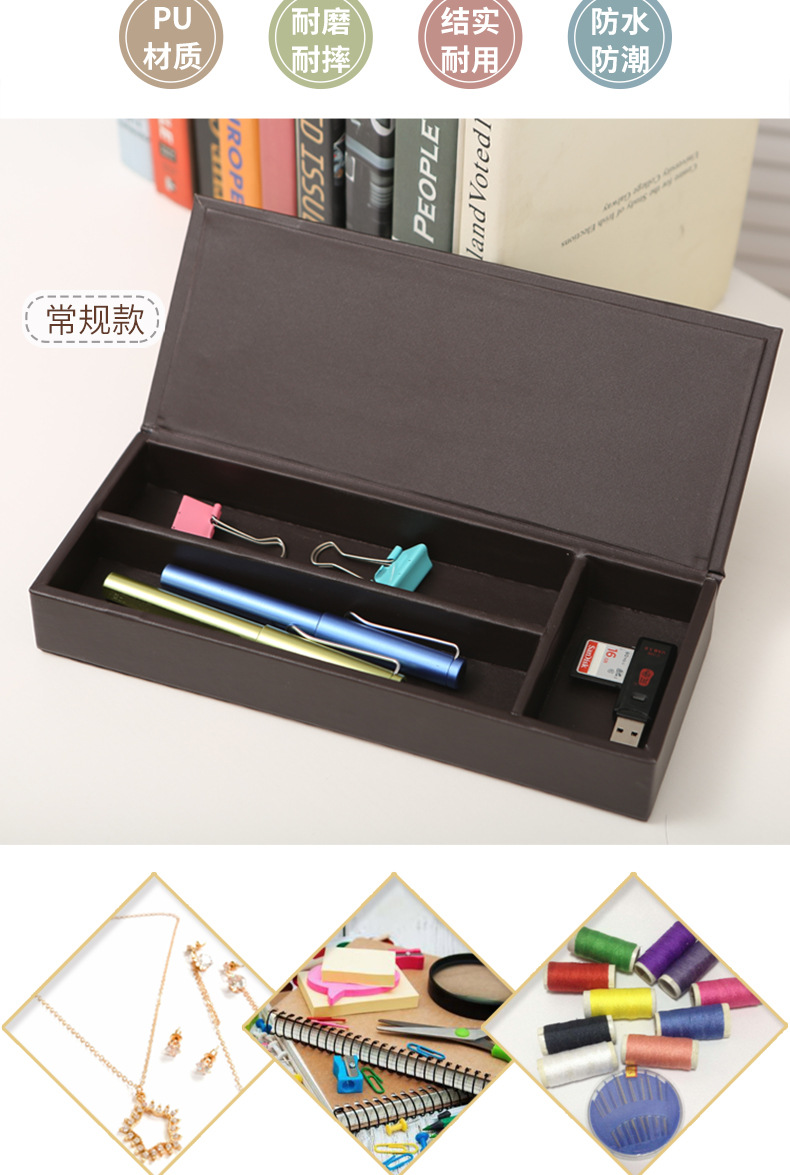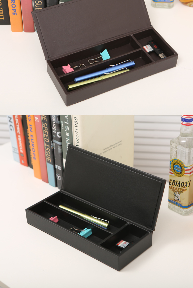 뚜껑이있는 가죽 필통 문구 케이스 다기능 보관함 간단한 데스크탑 다지 박스 정리 상자 서랍 내장 상자