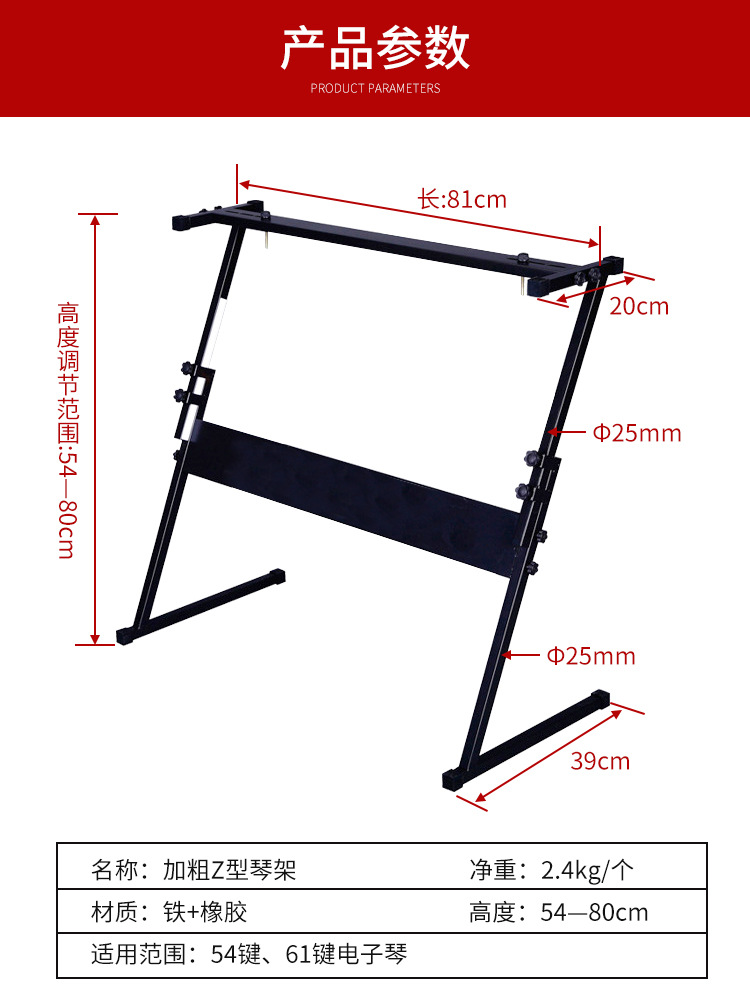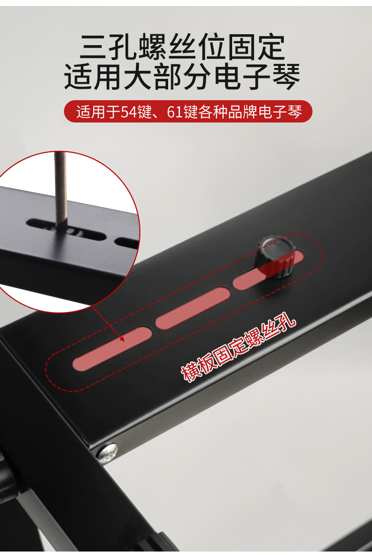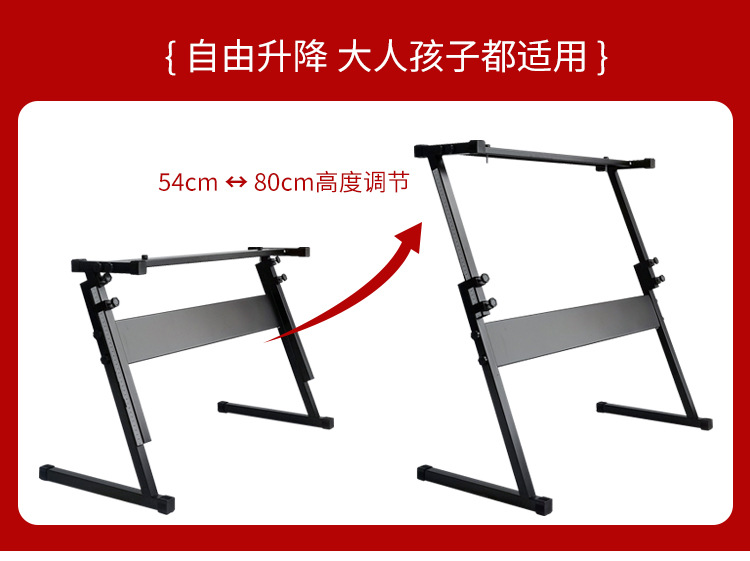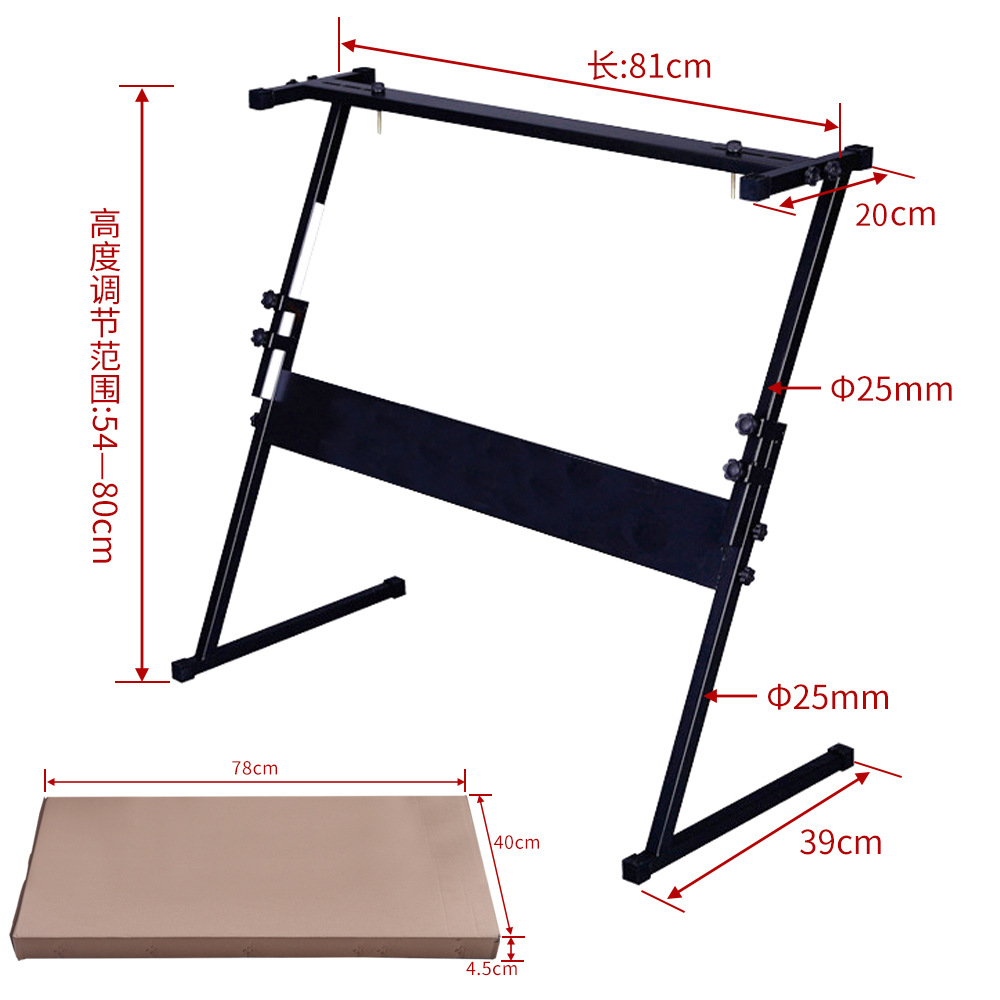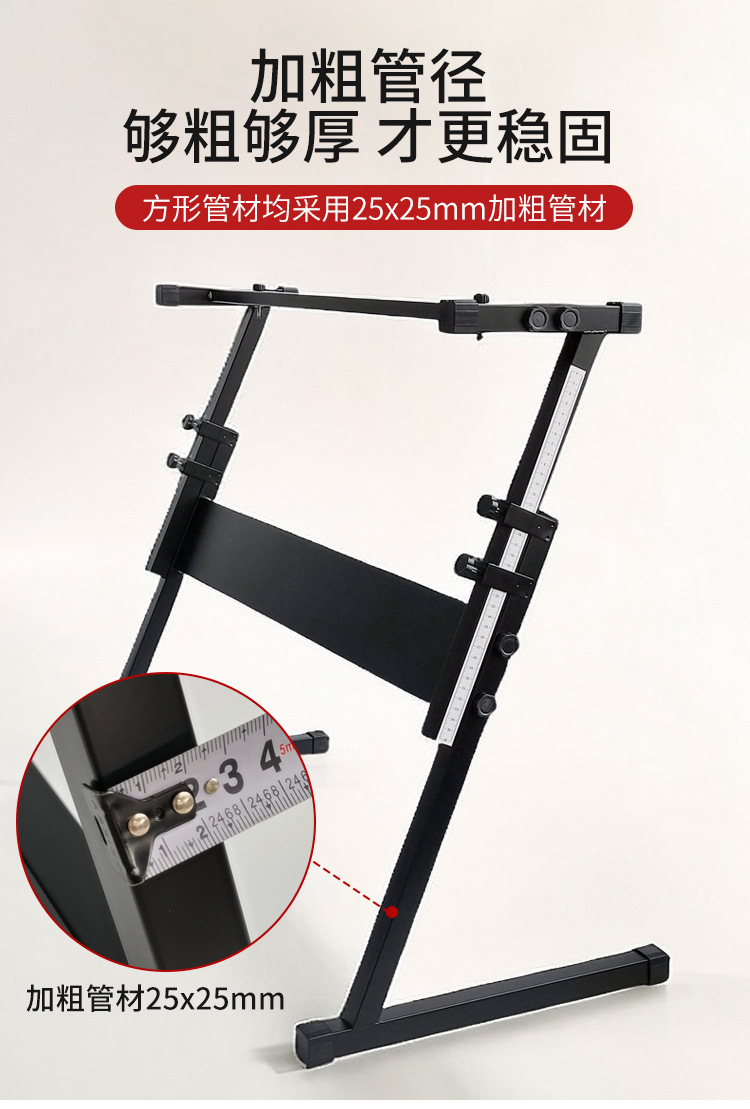 두꺼운 25*25mm 직경의 전자 피아노 스탠드는 54키 및 61키 피아노 스탠드 액세서리를 조절할 수 있도록 들어올릴 수 있습니다.