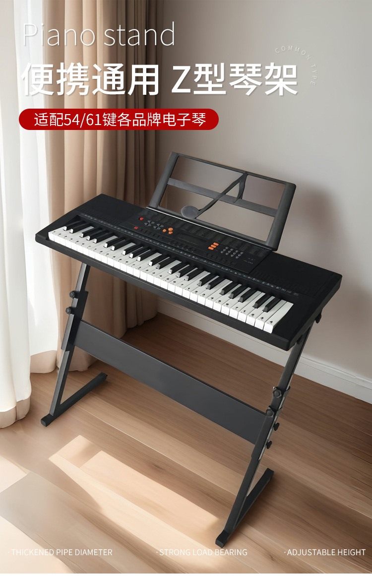 두꺼운 25*25mm 직경의 전자 피아노 스탠드는 54키 및 61키 피아노 스탠드 액세서리를 조절할 수 있도록 들어올릴 수 있습니다.스토어 가기